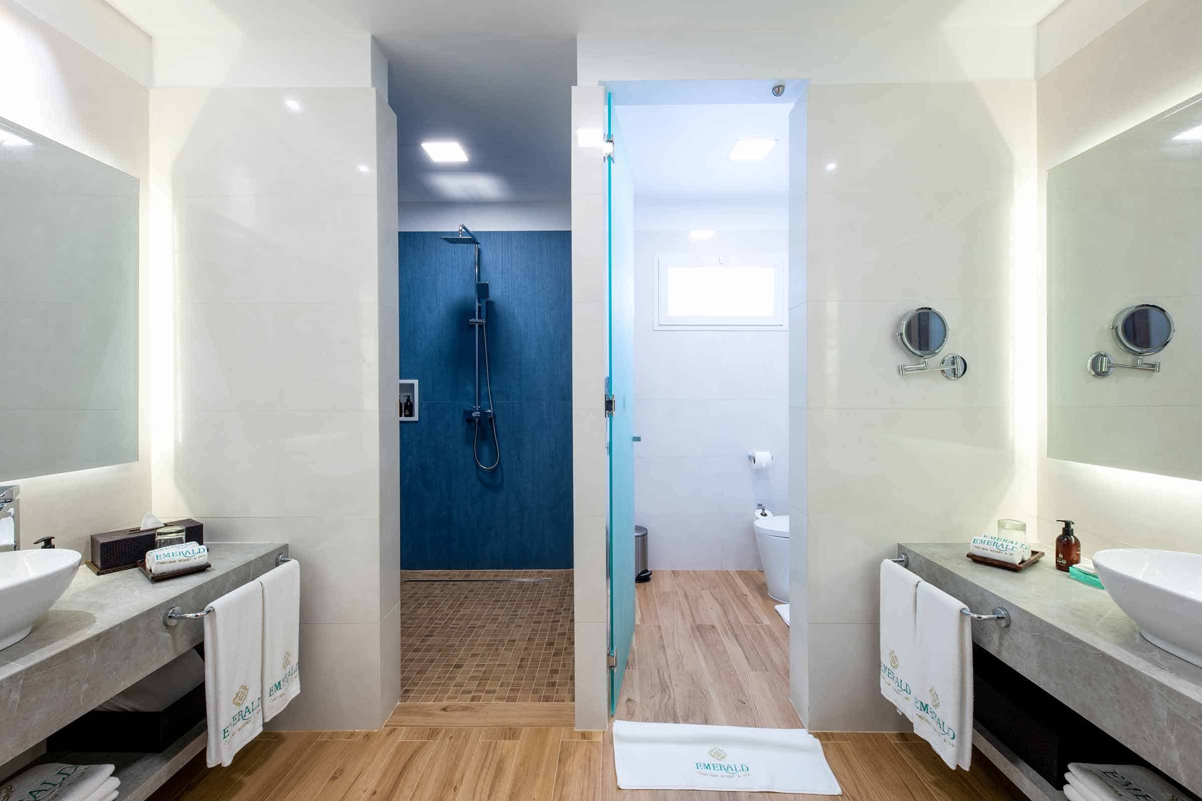 Номера оснащены кондиционером, телевизором с плоским экраном со спутниковыми каналами, холодильником, чайником, душем, тапочками и письменным столом. Курорт предлагает некоторые номера с видом на сад, и каждый номер оборудован балконом. Номера отеля Emerald Zanzibar Resort & Spa - Deluxe All Inclusive оснащены постельным бельем и полотенцами.