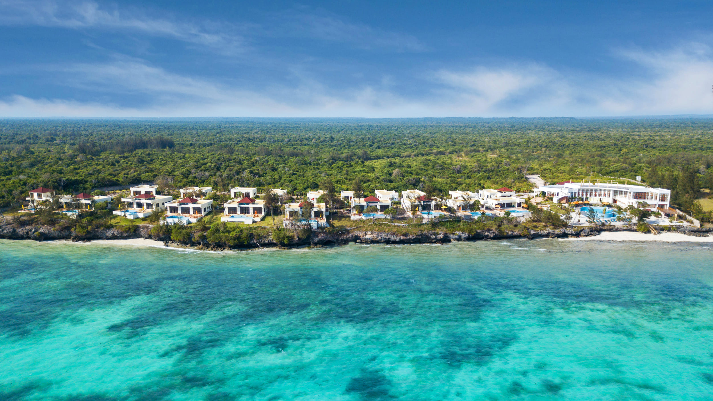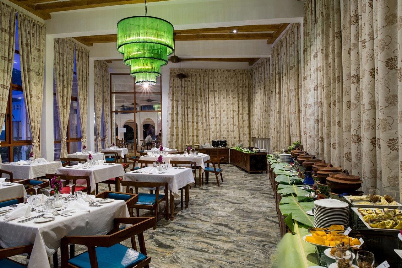 Отель простирается вдоль скалы на северо-восточном побережье острова и бирюзового Индийского океана, окружен пышной тропической зеленью.