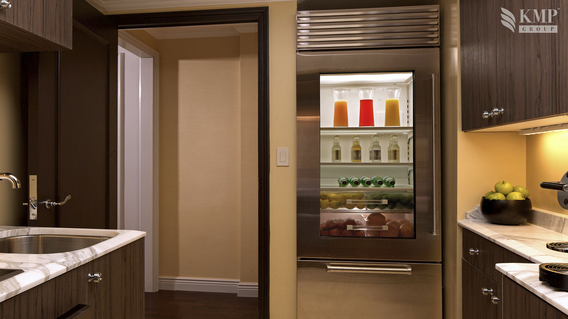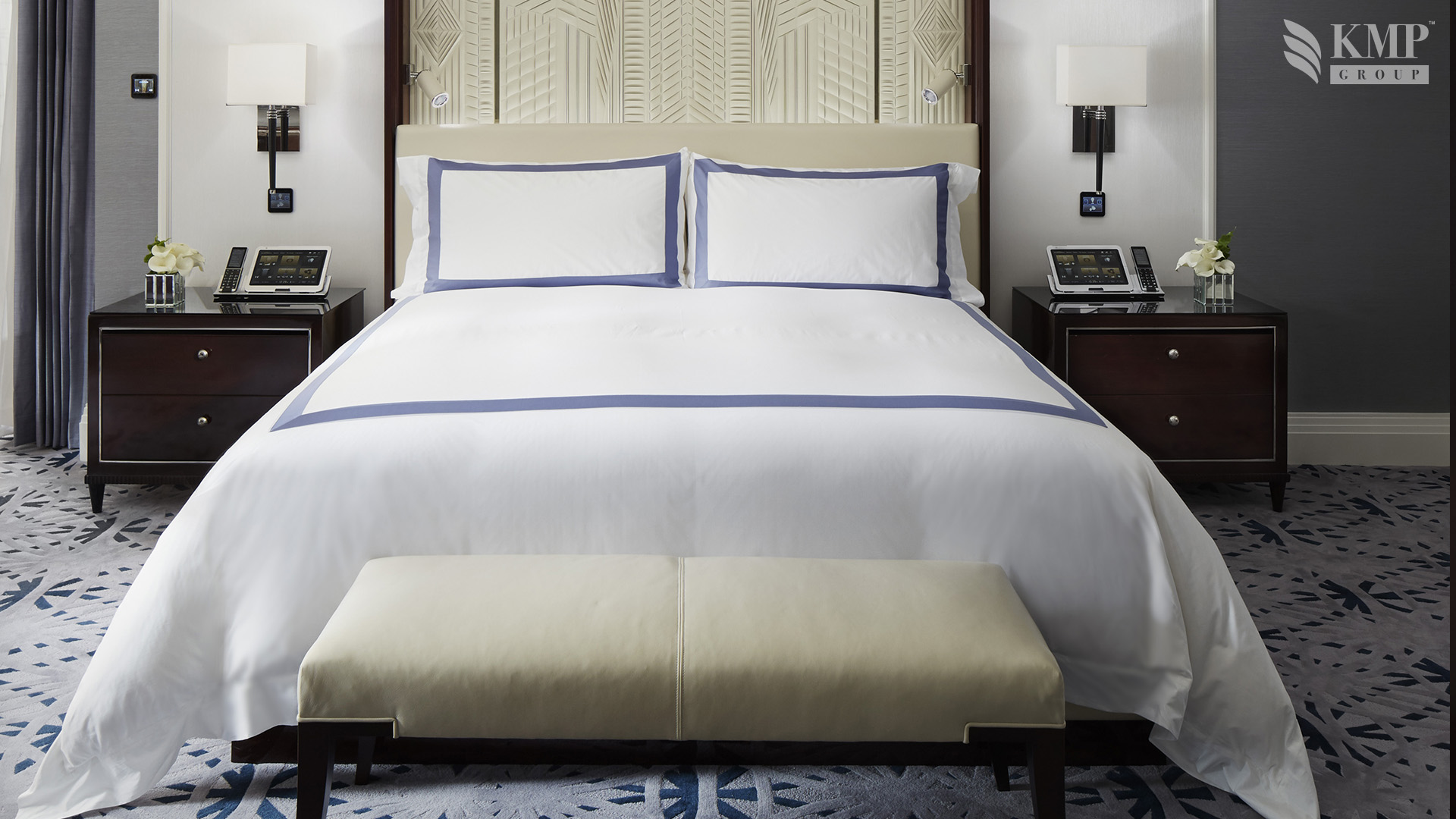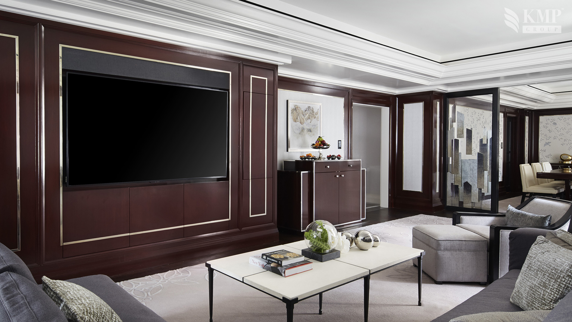 Grand suite (151 кв. м): холл, гостиная, столовая (стол на 8 персон), комната для прислуги, спальня с двуспальной кроватью, гардеробная, ванная комната с ванной и отдельной душевой кабиной, гостевая ванная комната. Дополнительно: принтер, возможность подключения iPod, 2 плазменные панели, декоративный камин. Расположены на 20 этаже. Вид на Пятую авеню и на 55 улицу.
