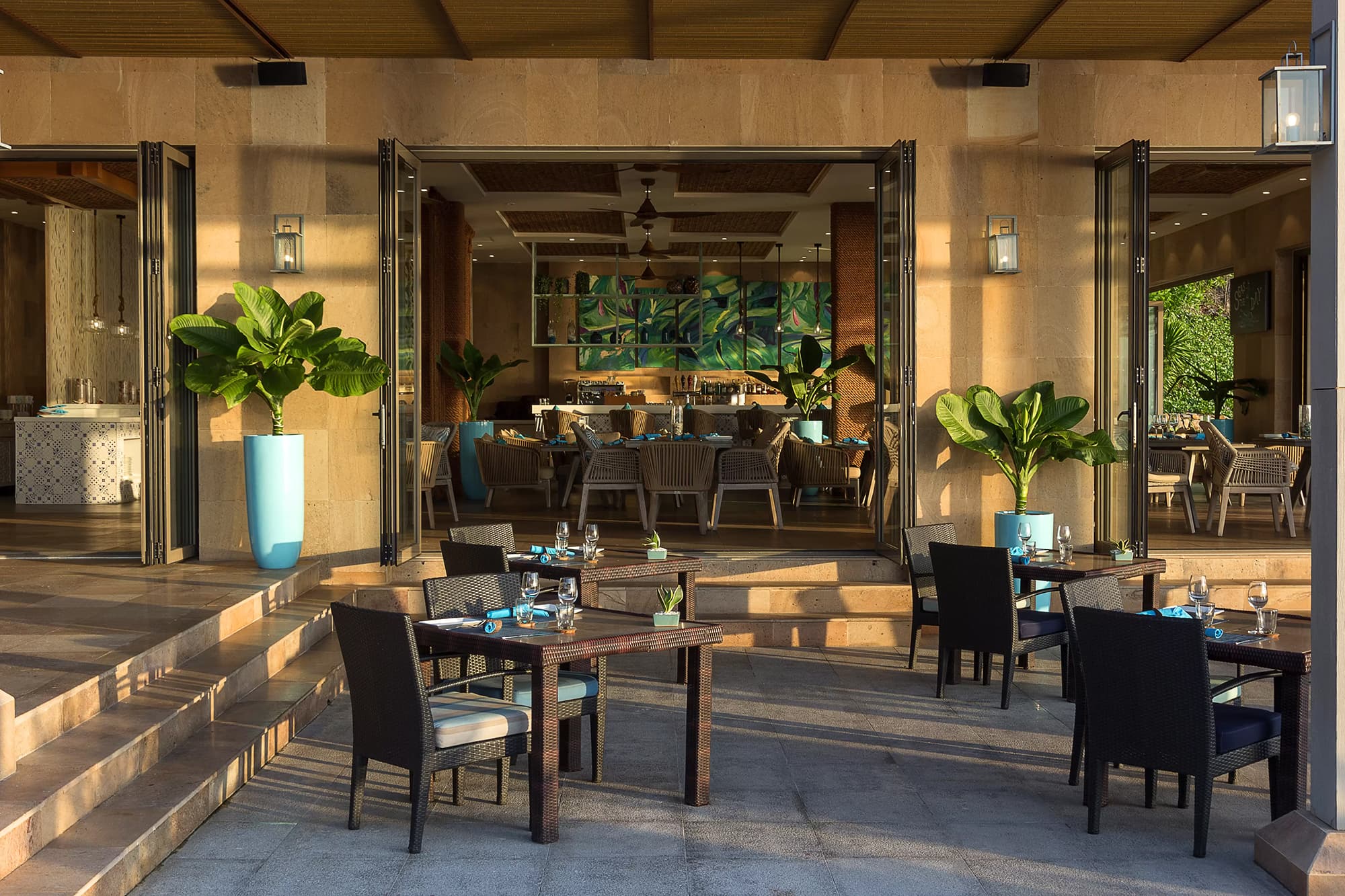 В ресторане и баре Sandals подают морепродукты и блюда интернациональной кухни, а ресторан LaBaia специализируется на итальянских блюдах. В обоих ресторанах ежедневно сервируется завтрак «шведский стол». В баре Mojito's представлен широкий ассортимент коктейлей и закусок.