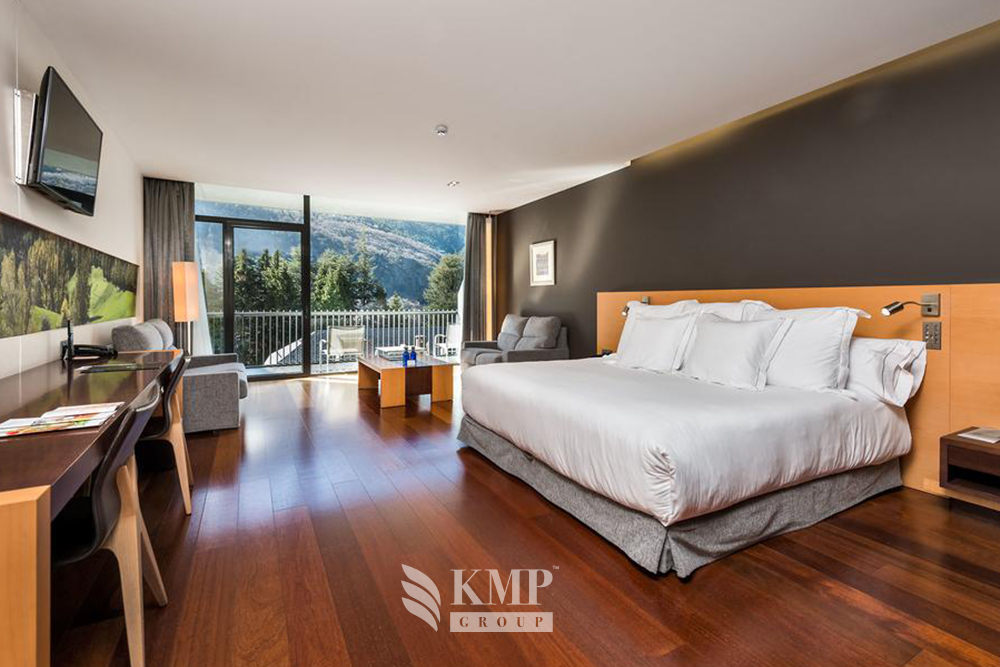 Duplex (80 кв. м + 12 кв. м). Двухуровневый номер: на первом этаже - гостиная с диван-кроватью, с телевизором и большой террасой, отдельная кухня и ванная комната; на верхнем этаже - спальня с двуспальной кроватью (или 2 односпальные кровати, 100х200 см), гостевой туалет, кофемашина Nespresso, туалетные принадлежности, выбор подушек, терраса с панорамным видом на долину Валира.