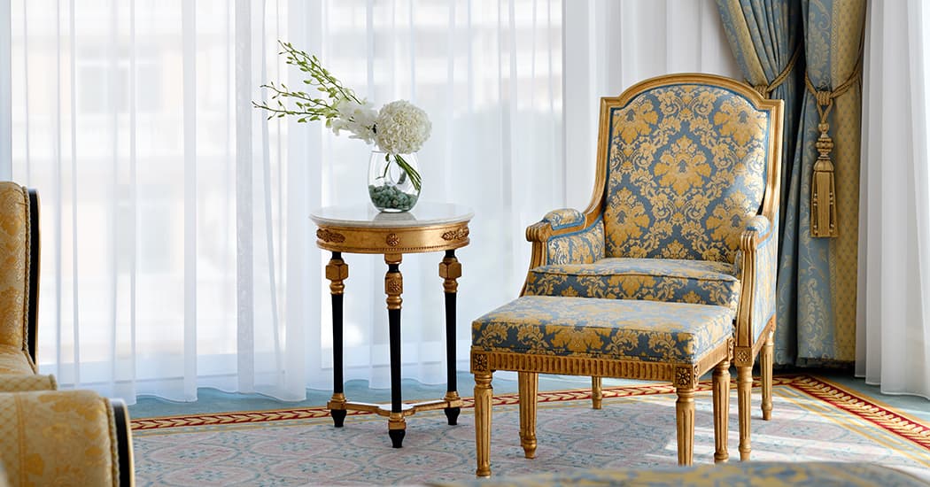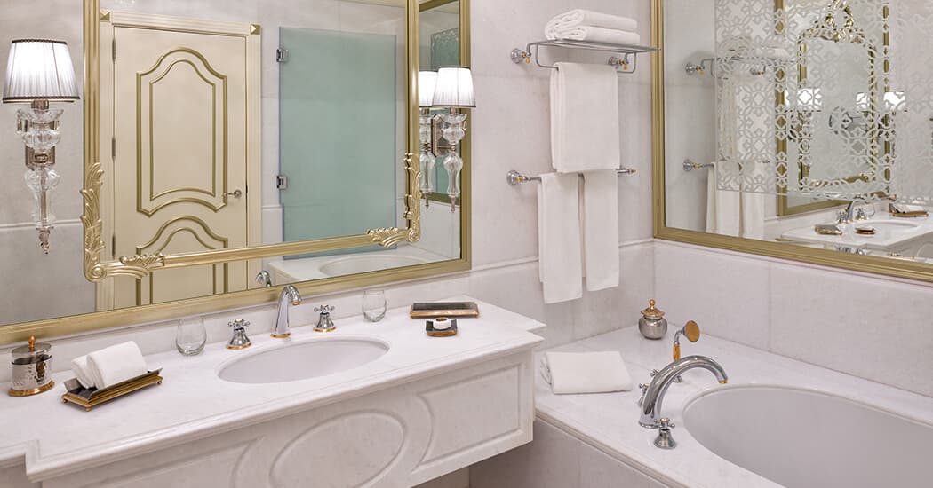 Кондиционер, спутниковое телевидение, Wi-Fi доступ в Интернет, мини-бар, оборудование для приготовления чая и кофе, сейф, фен, халаты, тапочки. Услуги камердинера.