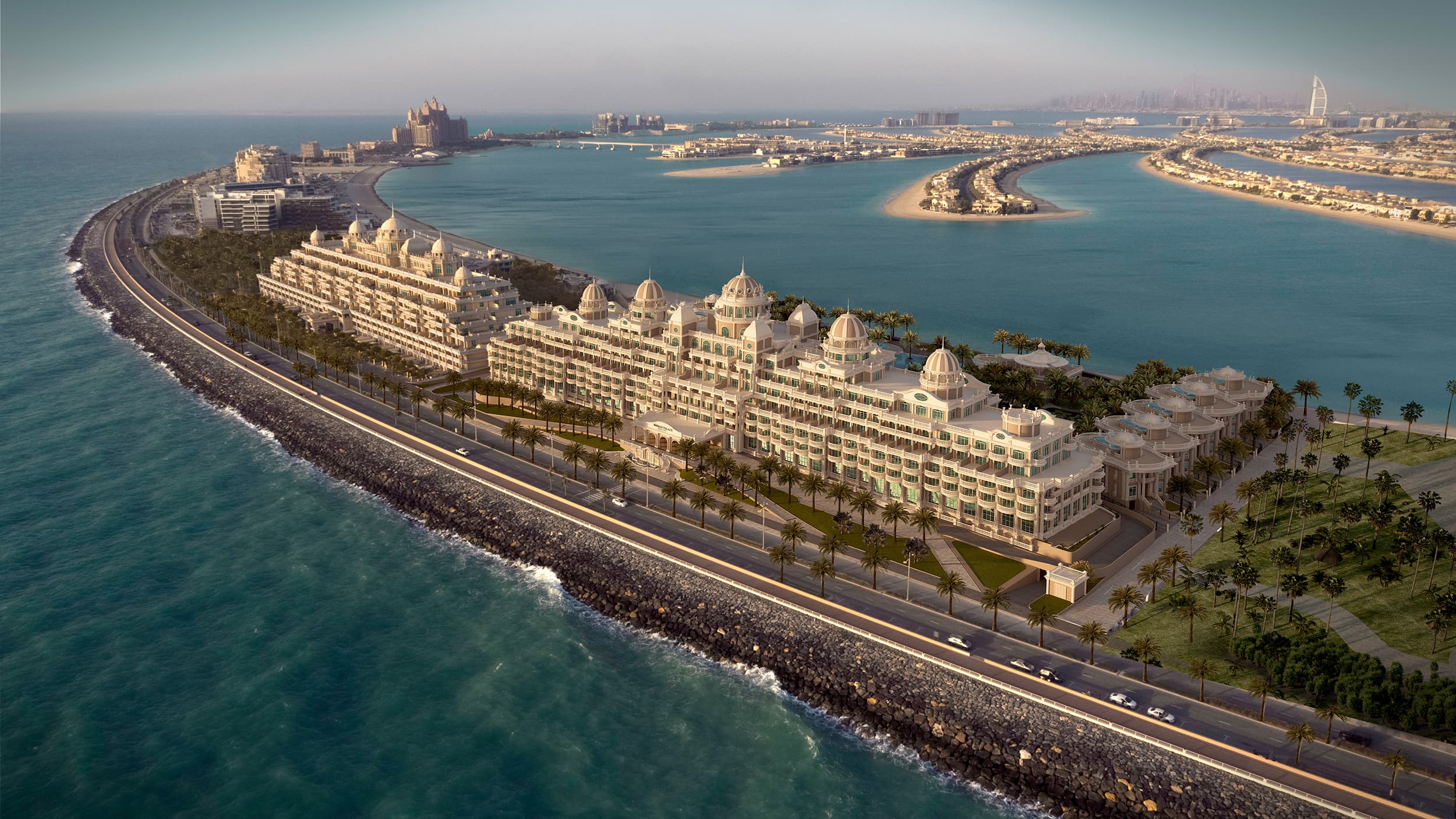 Отель расположен на западной части острова Пальма Джумейра в 30 минутах поездки на автомобиле (35 км) от международного аэропорта Дубая, в 48 км от международного аэропорта Al Maktoum, в 166 км от Абу-Даби. До центра города – 30 минут на автомобиле, до пристани Dubai Marina – 10 минут.