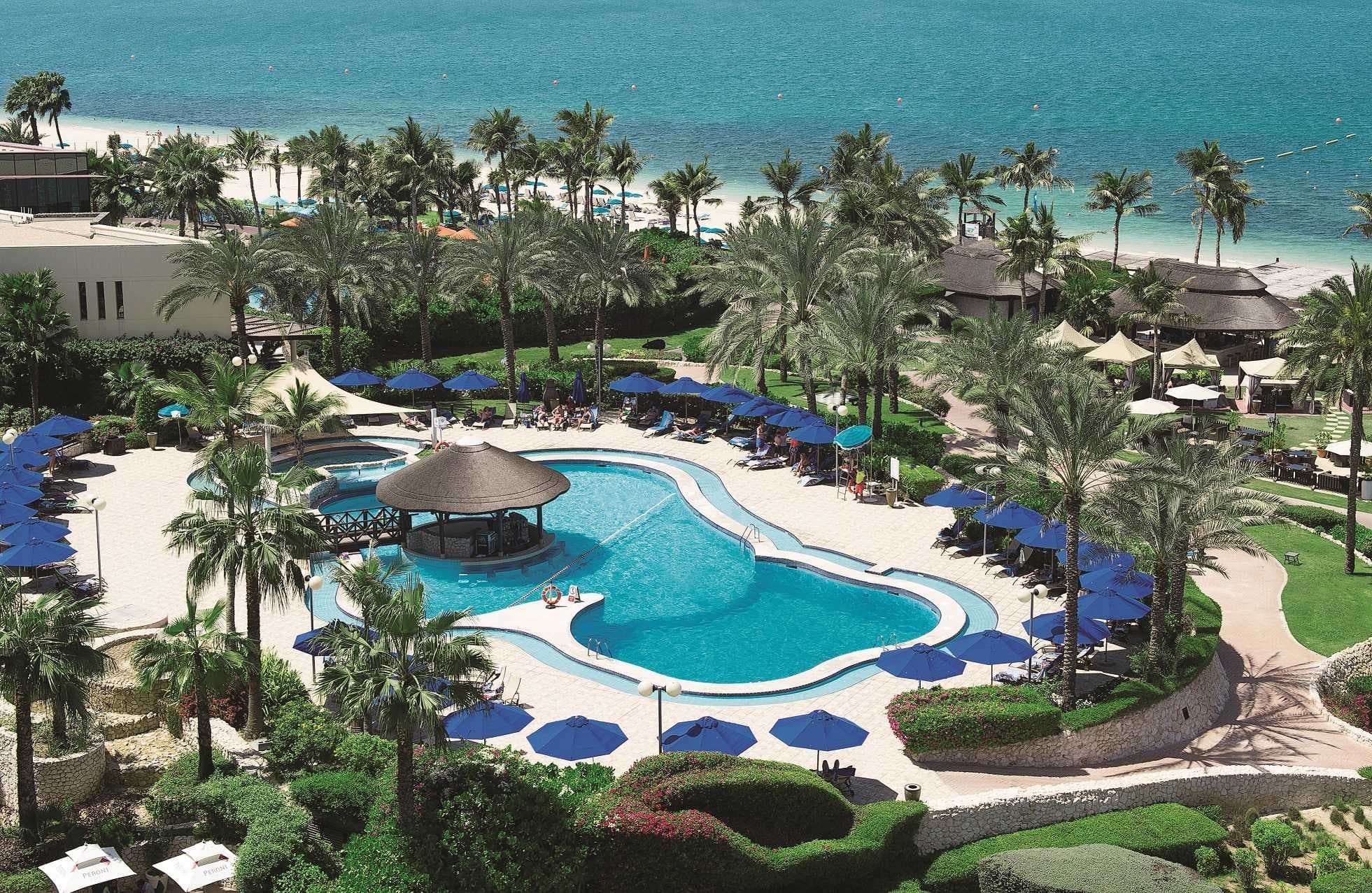Пятизвездочный курортный отель JA Palm Tree Court с собственным пляжем протяженностью 800 метров, 16 барами и ресторанами, 3 детскими клубами, спа-центром и удобствами для отдыха расположен в тихой местности на берегу Персидского залива посреди пышного сада с множеством птиц. На территории этого курортного отеля обустроены 4 терморегулируемых плавательных бассейна.