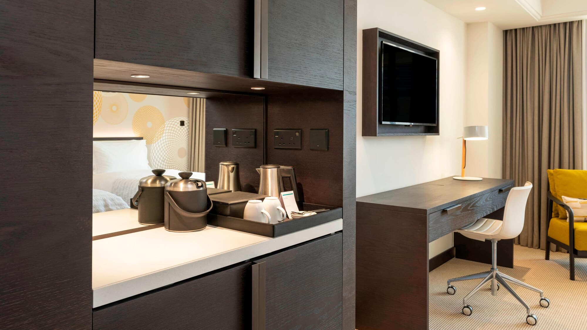 В числе удобств просторных номеров курортного спа-отеля Le Royal Meridien Beach Dubai — ЖК-телевизор с экраном диагональю 32 дюйма, кондиционер, балкон и мини-бар.