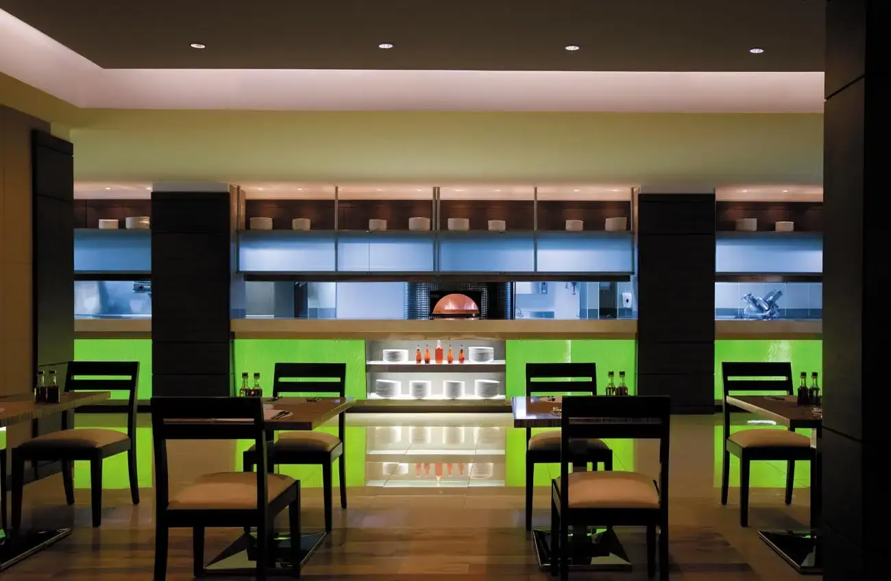 В отеле Qaryat Al Beri Abu Dhabi работает ресторан Afyä, где гостям в течение всего дня подают блюда интернациональной кухни. В лобби-лаундже и в баре у бассейна можно заказать различные закуски и напитки.