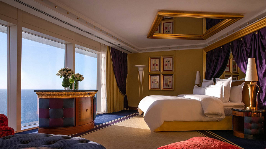 В числе удобств в каждом люксе планшет iPad, 21-дюймовый компьютер iMac, интерактивный телевизор с широким экраном и высокой четкостью изображения, а также мультимедийный центр Bose с док-станцией для iPhone. Из французских окон открывается панорамный вид на Персидский залив. Гостям предоставляется бесплатный Wi-Fi.