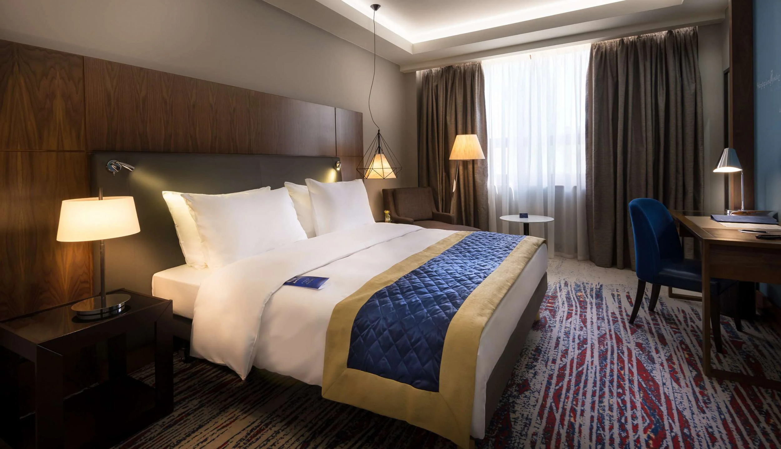 Junior suite (54 кв. м). Спальня с гостиной зоной, ванная комната. Вид на парк Победы или гору Арарат.