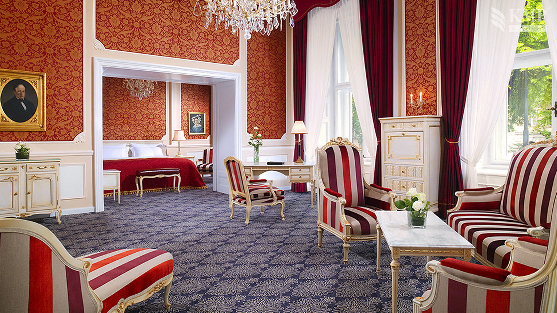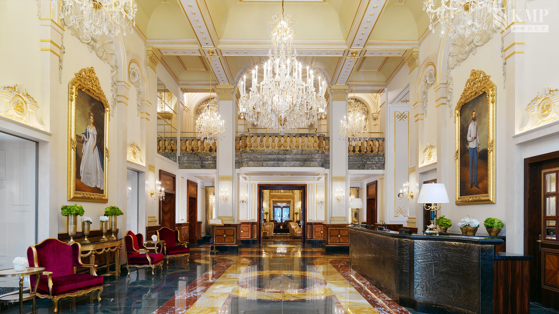 Premier Suites (60-95 кв. м). Потолки высотой до семи метров, штучный паркет с рисунком, библиотека, украшенная шедеврами признанных мастеров и современных художников. В открытом баре предлагаются премиальные ликеры и шампанское. Также гостей ждут свежие фрукты и знаменитый венский торт Imperial. Предоставляются услуги личного дворецкого.