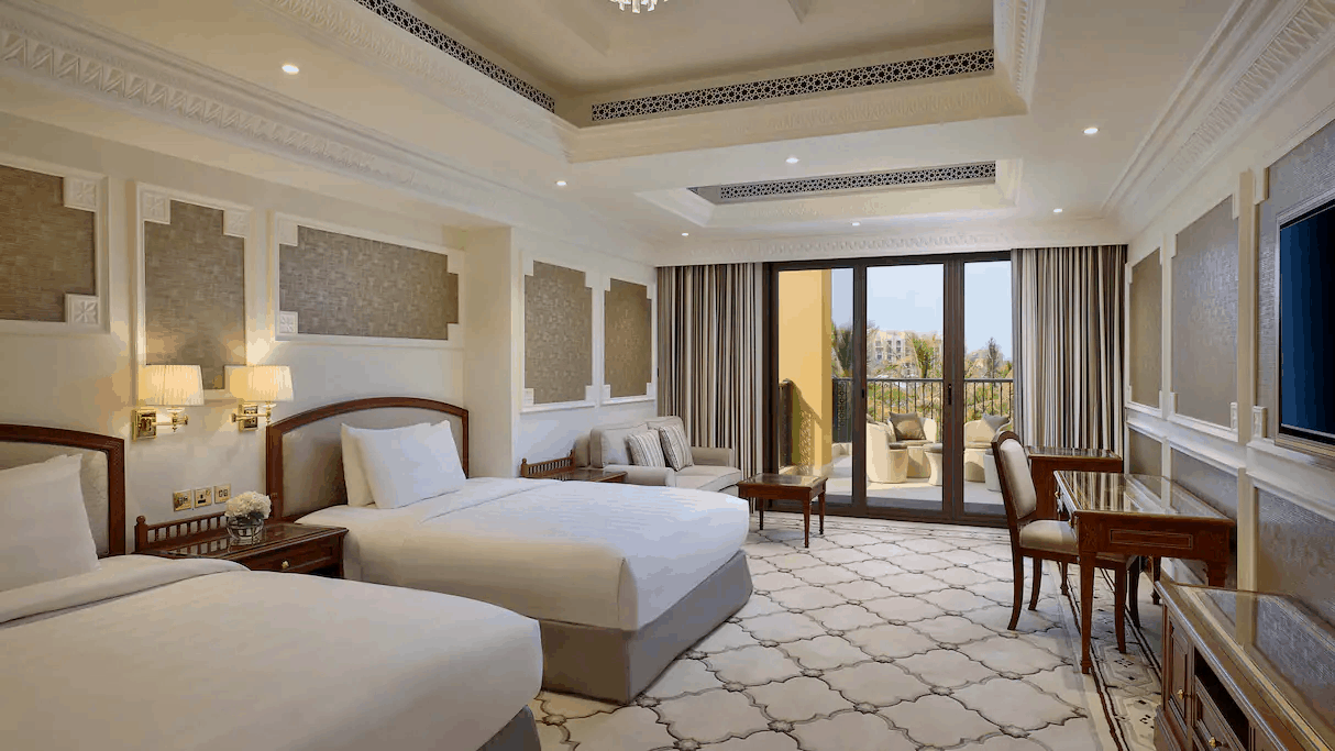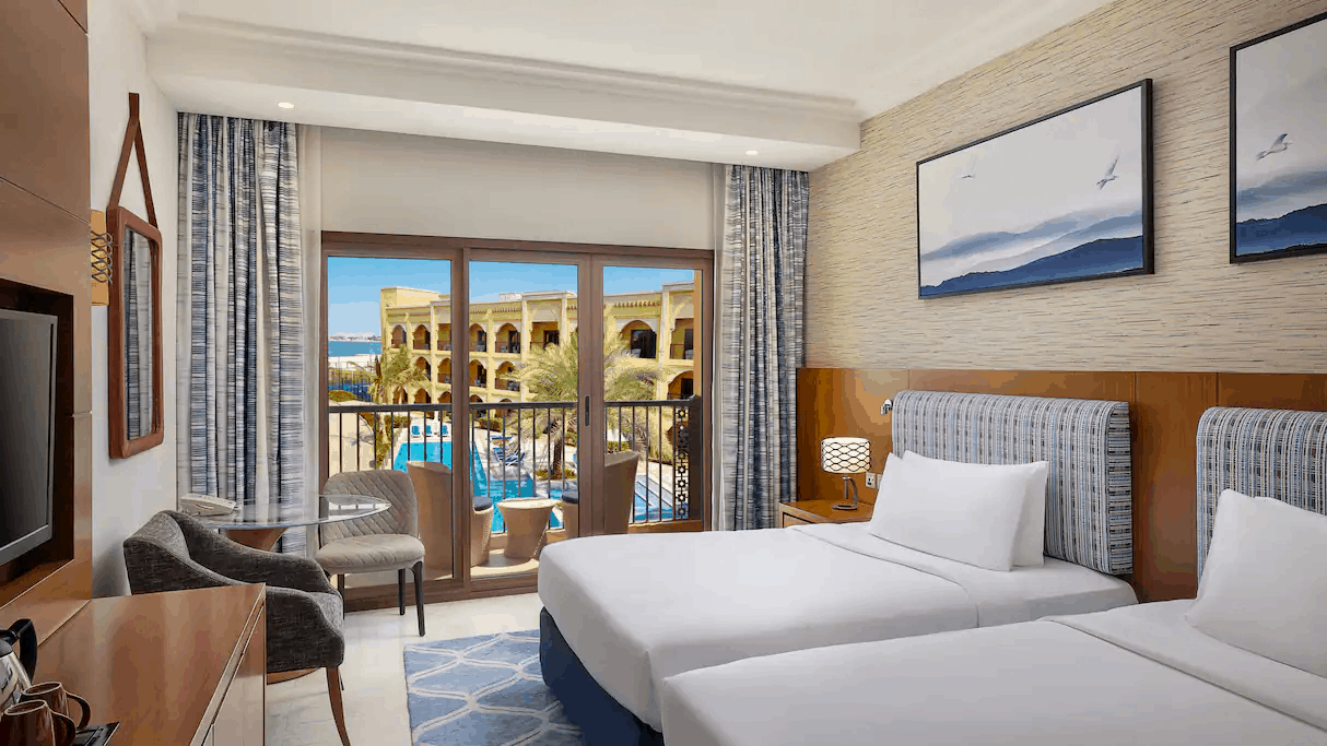 Курортный спа-отель DoubleTree by Hilton Marjan Island, из которого открывается вид на Аравийское море, расположен на острове Марьян, недалеко от района Аль-Хамра в городе Рас-эль-Хайма. К услугам гостей собственный пляж с белым песком протяженностью 600 метров и виллы с меблированным балконом. В местах общего пользования действует бесплатный Wi-Fi. В недавно отремонтированном детском клубе обустроены отдельные зоны с игровыми автоматами для детей старшего возраста и открытая детская игровая площадка. В аквапарке Pirate Boat Aqua Zone есть водные горки для всей семьи. В числе прочих удобств курортного отеля — самый большой на Ближнем Востоке плавучий аквапарк Tarzan boat с 2 трамплинами, 2 досками для прыжков в воду (верхняя высотой 4,3 метра), водной горкой и большой веревочной тарзанкой для любителей водного экстрима. Роскошный банкетный зале Jasmine Ballroom вмещает до 350 человек. В зависимости от мероприятий банкетный зал Jasmine Ballroom с просторным фойе с прекрасным естественным освещением может быть разделен на 3 отдельных зала для проведения совещаний.
