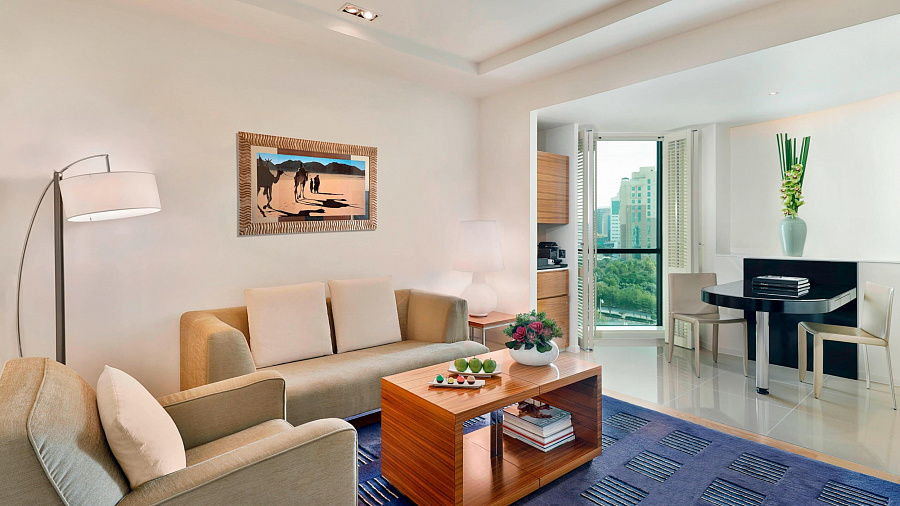 Club Suite Living Room (46 кв. м.). Двуспальная кровать, кондиционер, ванная комната, мини-холодильник. Вид на город.