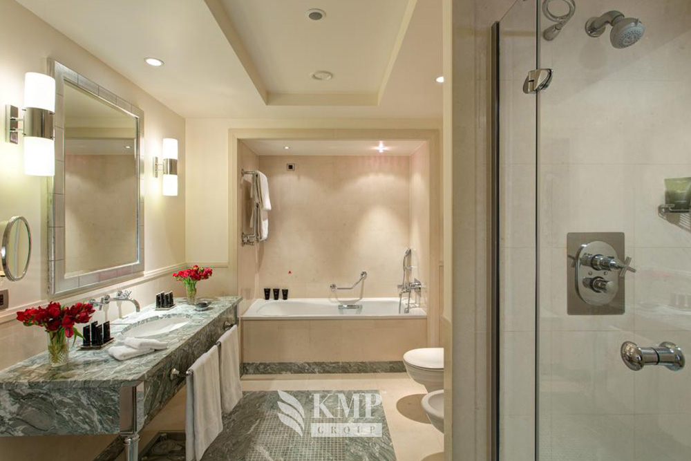 Junior suite (60 кв. м). Гостиная, спальня с кроватью king-size, гардеробная, ванная комната. Дополнительно: домашний кинотеатр Bang&Olufsen, DVD-плеер, док-станция для iPod, халаты, тапочки.