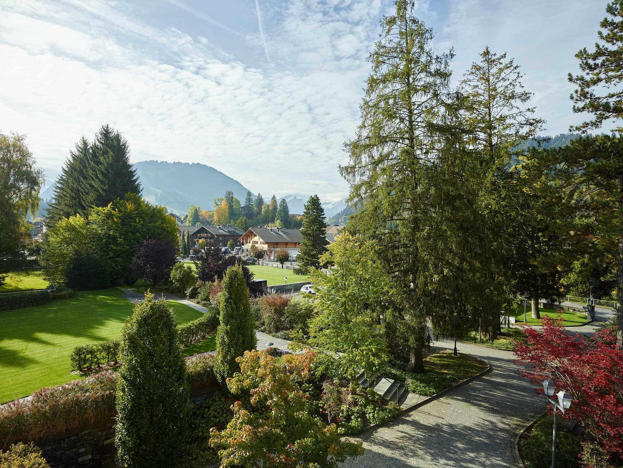 Отель расположен в парке, неподалеку от центра Гштаада.