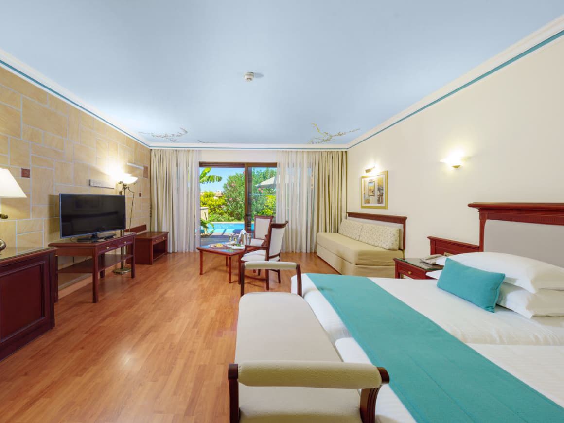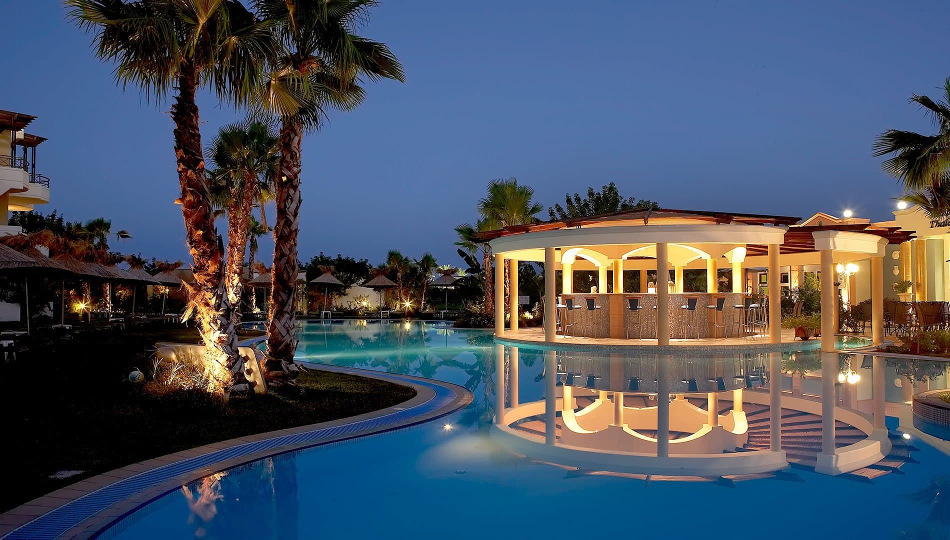 Элегантный отель расположился на восточном побережье острова Родос. Внешний облик Atrium Palace Thalasso Spa Resort & Villas отражает насыщенную событиями историю острова – классические каноны античной архитектуры сочетаются с византийскими и итальянскими мотивами, а также строительными традициями крестоносцев. Во внутреннем дворике разбит живописный сад с прудами и водопадами. Территорию отеля украшает впечатляющий комплекс бассейнов с каскадами, мостиками и залитыми солнцем террасами, окруженный яркой зеленью газонов и экзотических пальм. В отеле тренажерный зал, 2 освещаемых теннисных корта, настольный теннис, волейбол, баскетбол, бильярд, мини-гольф, дайвинг, детская игровая площадка, 2 конференц-зала (до 180 человек), услуги няни. Неподалеку от отеля: водный спорт.