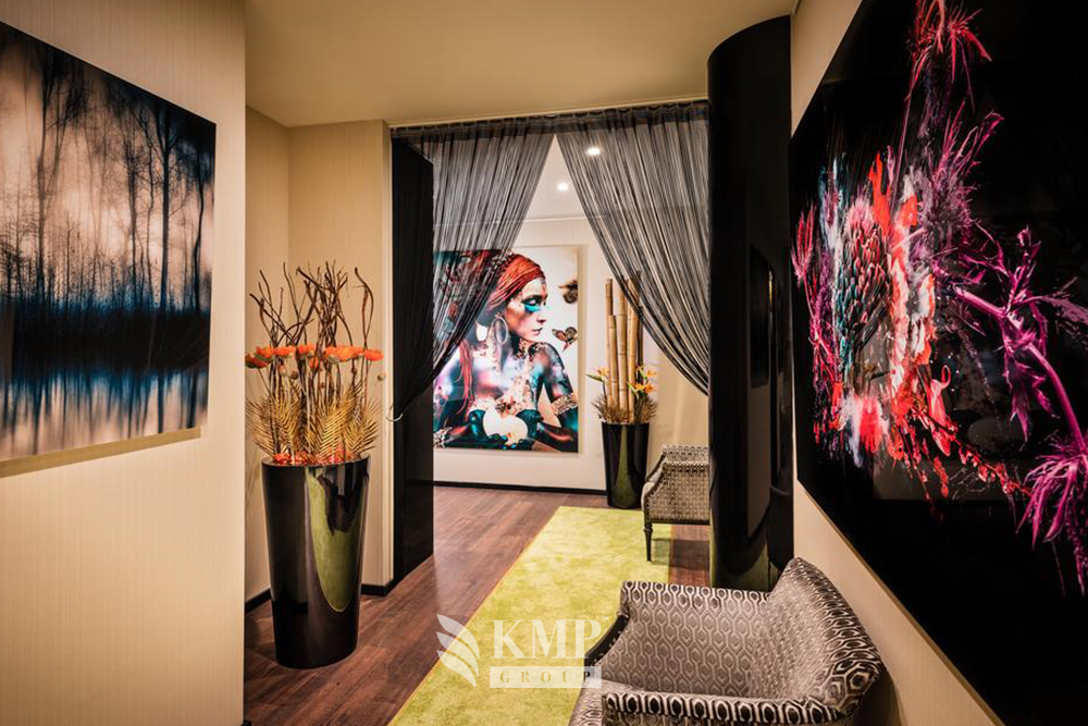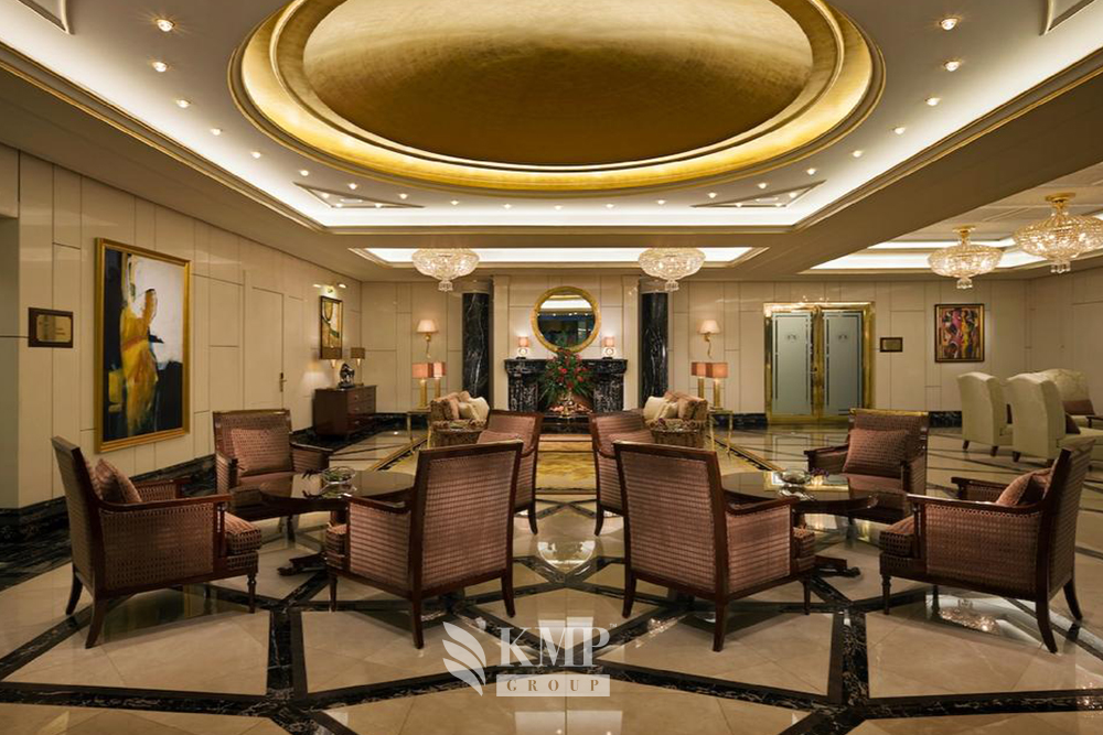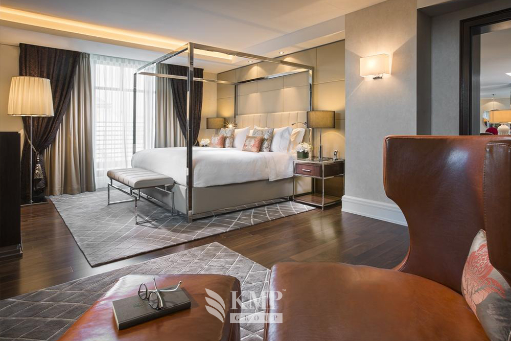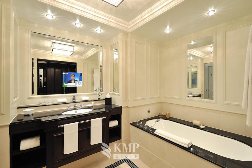 Presidential suite 2-bedroom (172-222 кв.м). Прихожая, гостиная, столовая, кабинет, 2 спальни (в каждой – кровать king-size), 2 ванные комнаты (каждая – с ванной и душем), сауна. Вид на город. Возможно объединение номеров.