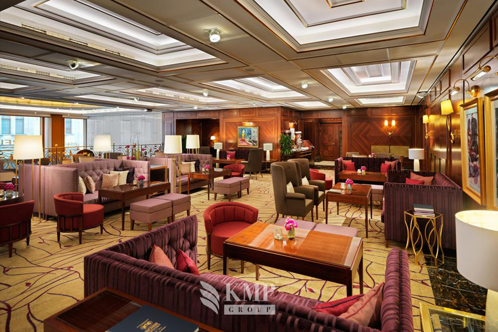 Grand suite (120 кв.м). Гостиная со столовой зоной, спальня, ванная комната с душем. Вид на город.
