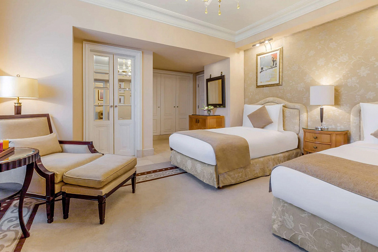 Nile Junior Suite (56 кв. м). Телевизор с плоским экраном, рабочий стол, отдельная гостиная и спальня, 24-часовой дворецкий, детская кроватка разрешена, кофемашина Nespresso, бесплатный вай-фай, принадлежности для кофе и / или чая в номере, ванная: ванна, душ, биде, кровати: King, возможность курения: да, вид на реку.