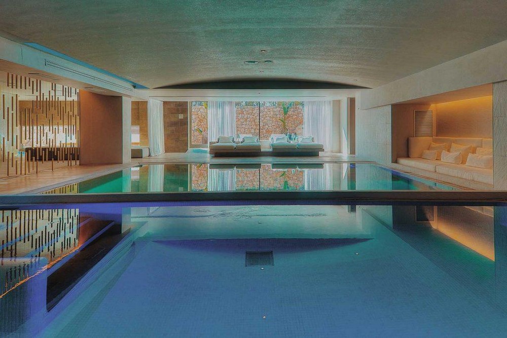 Современное здание небольшого курортного отеля Aguas De Ibiza Lifestyle & Spa, Ибица, окруженное яркой зеленью, расположено возле причала для яхт Santa Eulalia, на северном побережье острова Ибица. Aguas De Ibiza Lifestyle & Spa, Ибица, сочетает стильное размещение, гостеприимство и флер средиземноморской культуры. Aguas De Ibiza Lifestyle & Spa, Ибица, построен местным архитектором Juan de los Ríos и удачно вписан в окружающий ландшафт. Лаконичные интерьеры отеля отличаются четко выстроенной композицией. Рестораны, бары и гостиная отеля предлагают меню средиземноморской кухни в сопровождении фирменных коктейлей и разнообразных напитков. Также в распоряжении гостей — оздоровительный клуб, салон красоты, конференц-центр, бизнес-центр, бутик, бассейны.