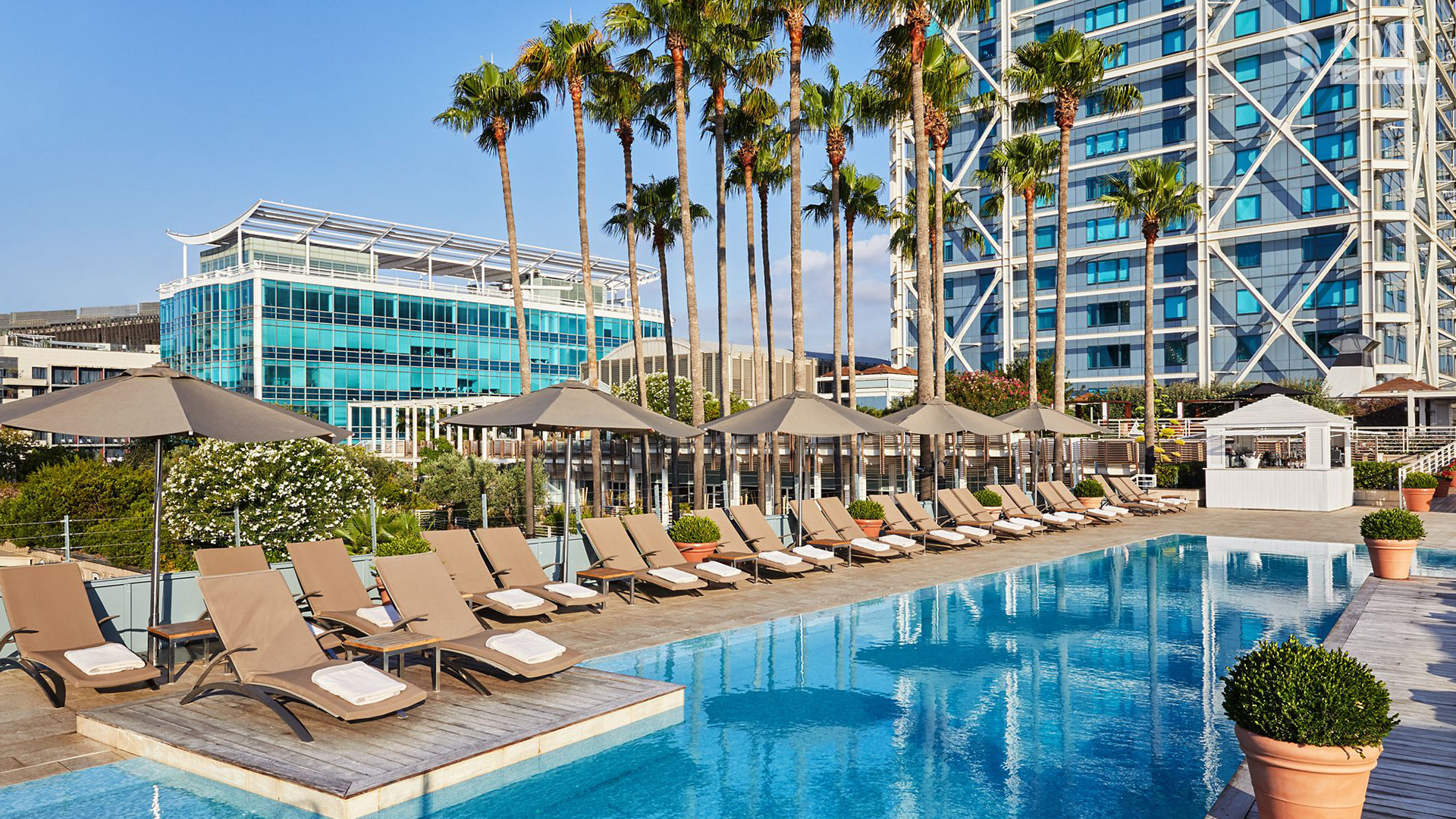 Deluxe Room (45 кв. м). Спальня с гостиной зоной, большой двуспальной кроватью или двумя отдельными кроватями, ванная комната с ванной, душевой, двумя раковинами и отдельным санузлом. Из окон открывается вид на море и город или Барселону.