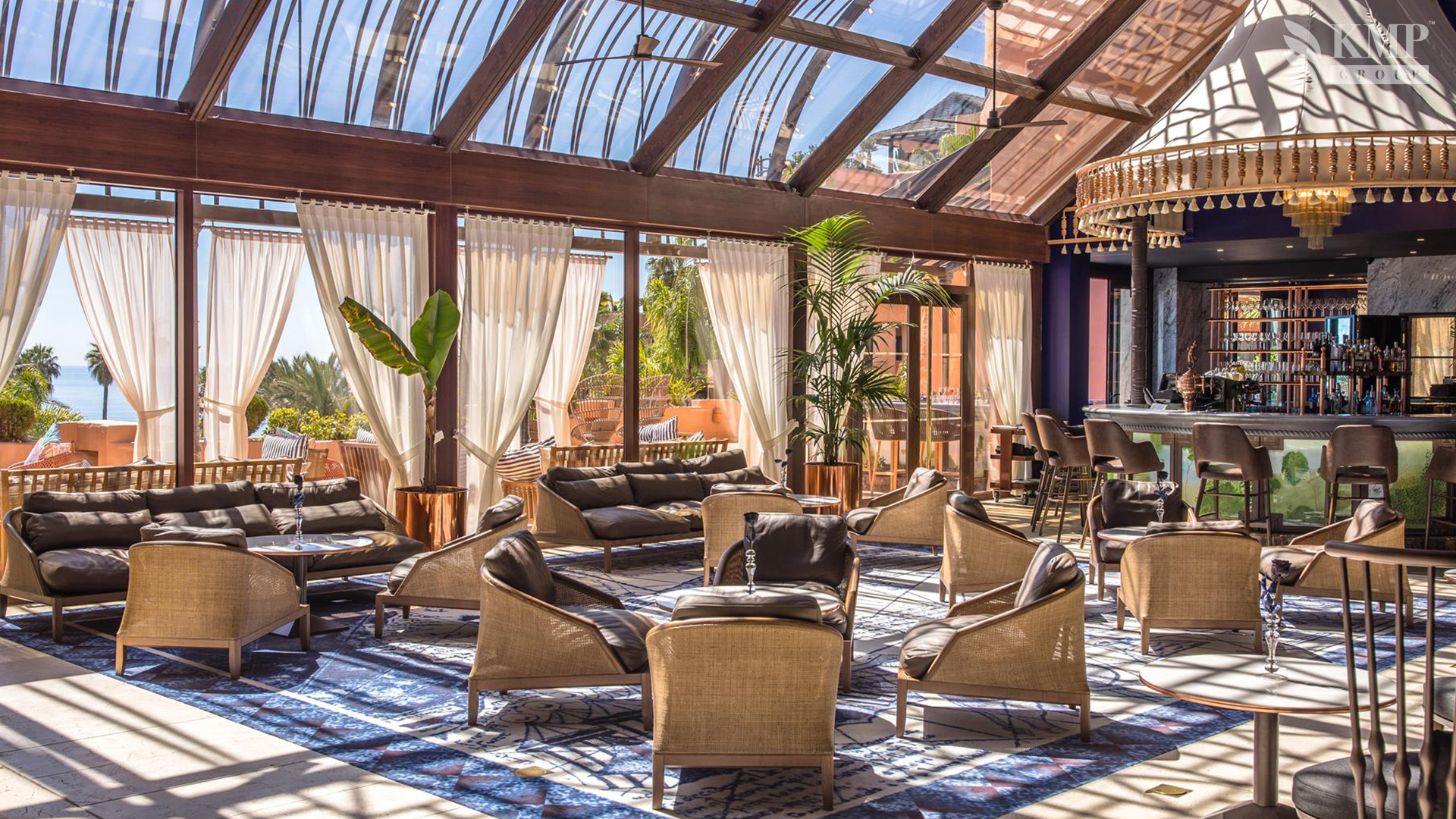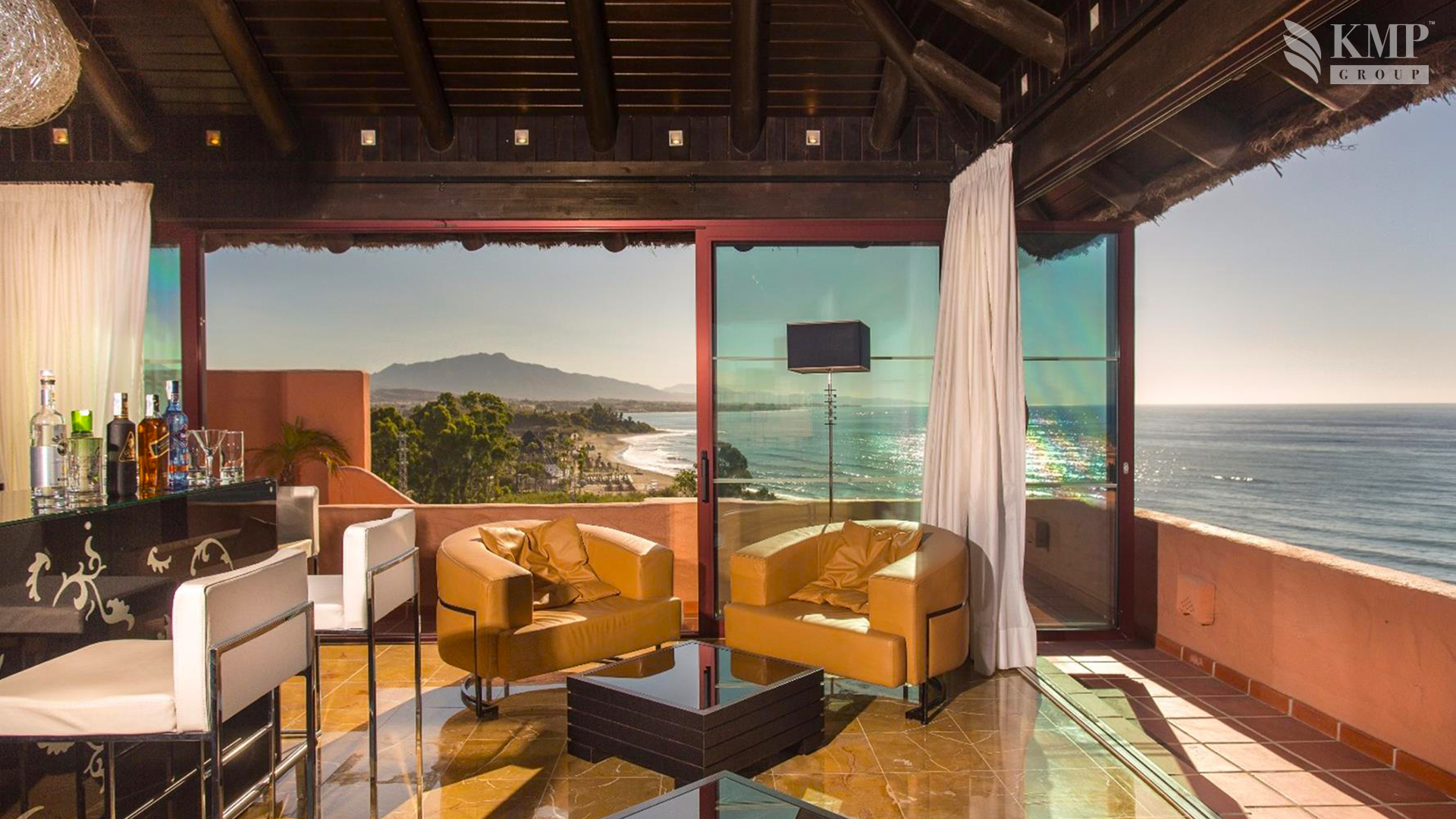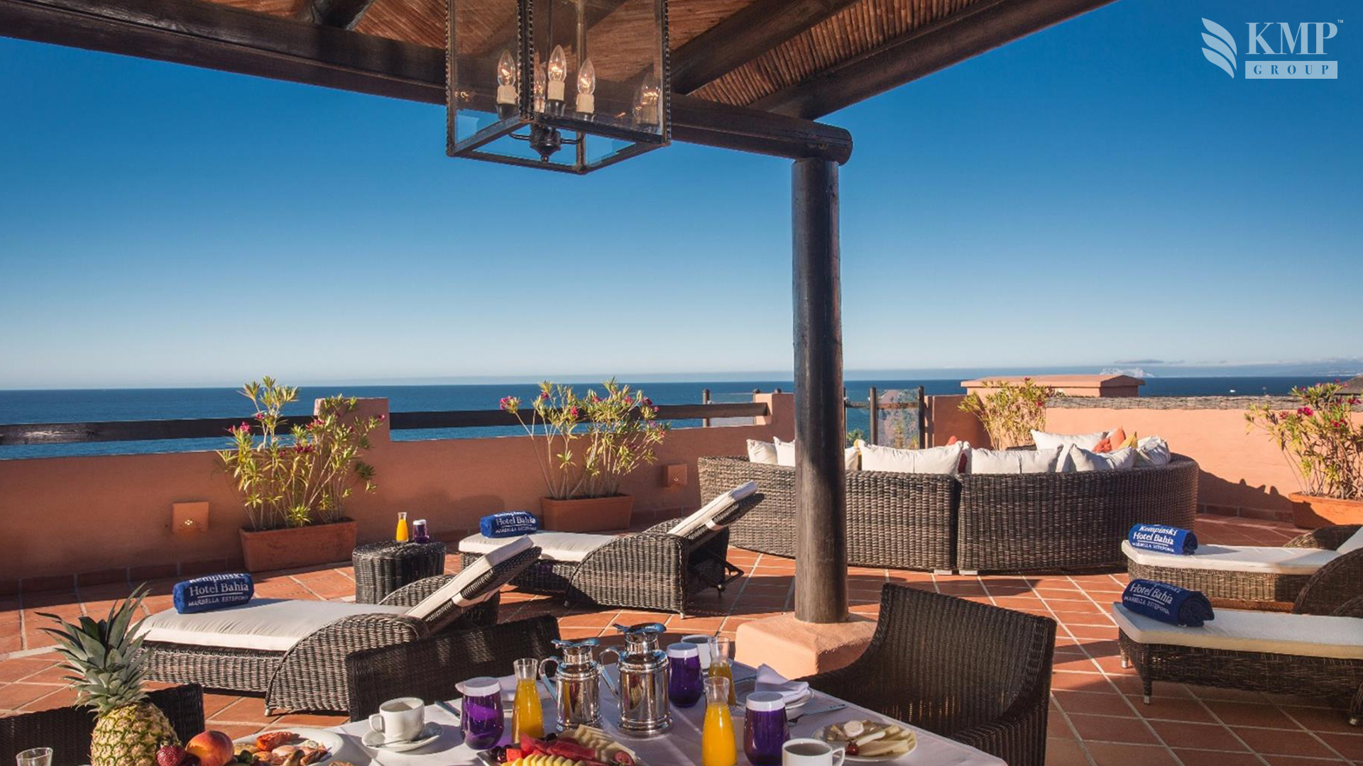 Royal suite (ex. Poniente suite) (461 кв. м). Двухуровневый номер. Терраса (261 кв. м) с обеденной зоной на открытом воздухе, гостиная с обеденной зоной, мини-кухня, спальня с кроватью king-size, гардеробная, ванная комната с ванной и душевой кабиной, гостевой туалет. Дополнительно: камин. Расположен на верхнем этаже. Вид на море. Номера имеют открытую планировку: спальная и ванная зоны не разделены. Возможно объединение с номерами категории Presidetial suite и Grand Mediterranean room (общая площадь - 626 кв. м). Услуги дворецкого.