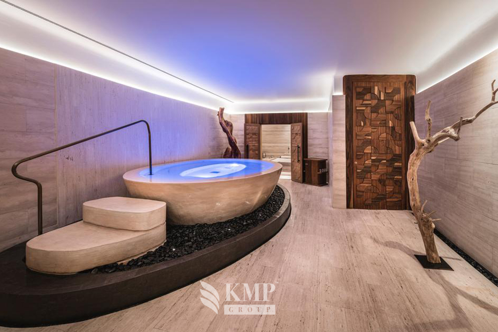 Real Suite: 290 м2. Состоит из двух спален с кроватями king-size, гостиной с роялем, камином и панорамными окнами, отдельной столовой на 10 персон, кухни, двух отделанных мрамором ванных комнат, гостевой туалетной комнаты, комнаты для спа-процедур и и занятия фитнесом, полностью оборудованного кабинета, просторной меблированной террасы с панорамным видом на город. Гостям номера предлагаются специальные услуги. Максимальное размещение - 6 человек. Располагается на 9 этаже.