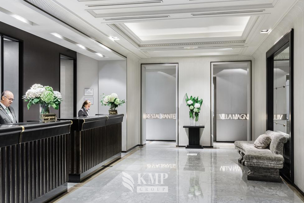 Magna Room: 30 м2. Комфортный номер оборудован мебелью из красного дерева или мебелью с отделкой из белой эмали. Состоит из спальни с кроватью king-size или двумя кроватями twin, ванной комнаты. Вид на улицу Serrano. Возможно соединение с Magna Room и Executive Suite. Максимальное размещение — 2 человека. Номера располагаются с 1 по 8 этаж.