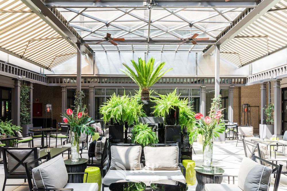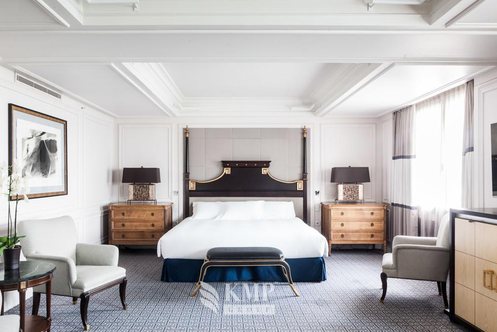 Junior Suite: 50 м2. Состоит из спальни с кроватью king-size или двумя кроватями twin, гардеробной, гостиной зоны с двумя диванами и рабочим столом, ванной комнаты с отдельной ванной и "тропическим" душем. Вид на улицу Serrano. Максимальное размещение — 3 человека. Номера располагаются с 1 по 7 этаж.
