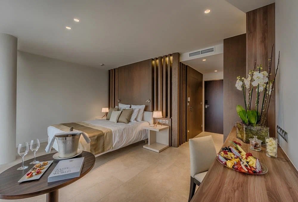 Executive suite (66 кв. м). Терраса, гостиная зона, спальня с кроватью king-size или двумя отдельными кроватями, ванная комната с джакузи и душем. Вид на море. Возможно объединение с номерами категории Design suite.