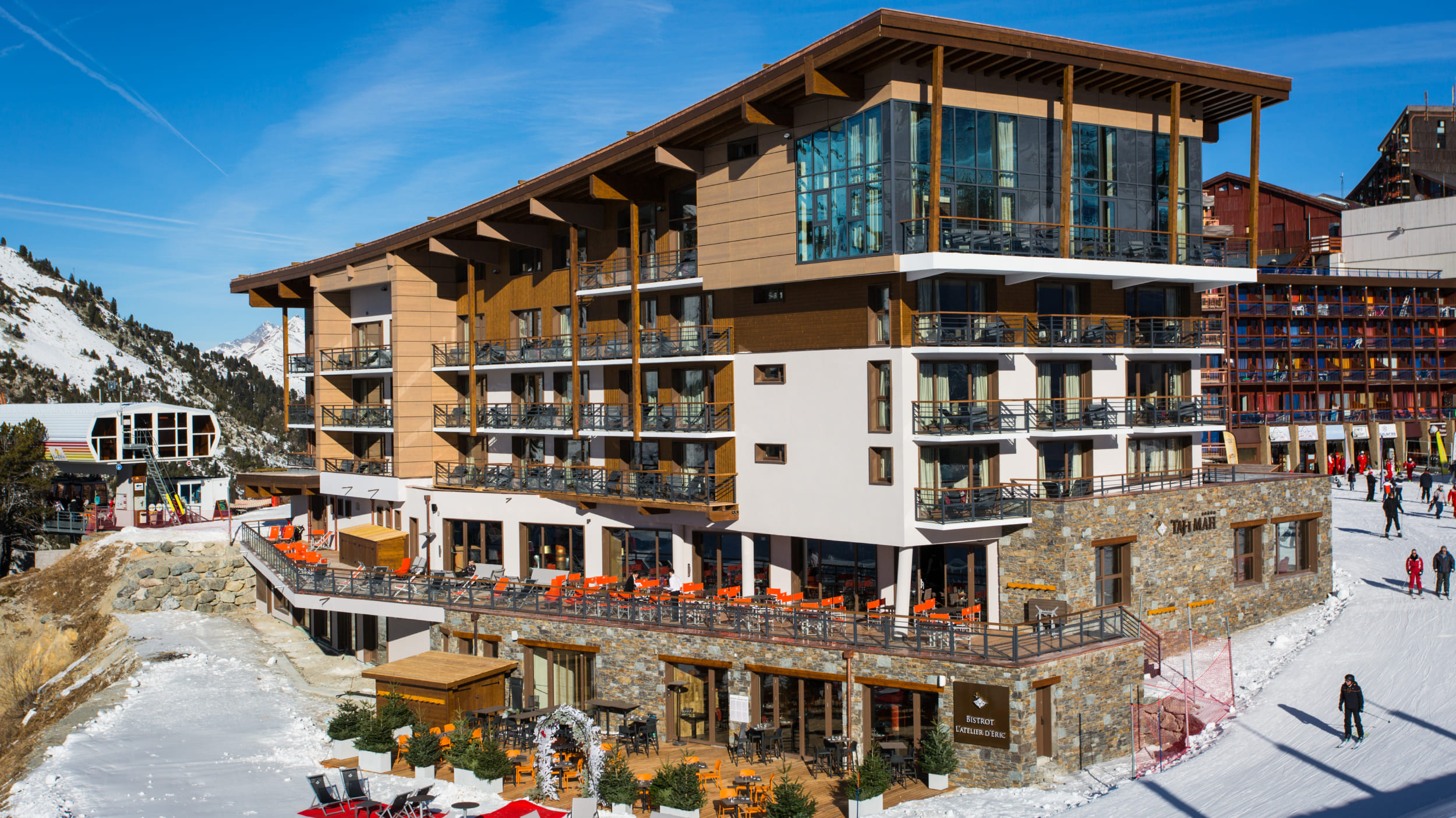 На индийском языке, Taj-I Mah означает «Лунная корона» Этот бриллиант, весом в 115 карат – самый большой бриллиант еще ни разу не оправленый в корону, и в настоящее время находится во владении Королевской Иранской семьи. Это не только первый 5-звездочный отель на курорте Les Arcs, но так же и во всей лыжной области Paradiski, объединяющeй Les Arcs, Peisey-Vallandry и La Plagne Так же, как этот бриллиант, отель Taj-I Mah является настоящей жемчужиной на лыжных трассах. Отель предлагает к вашим услугам роскошное ощущение свободы и пространста в сочетании с высококлассным оборудованием и всеми удобствами, а так же услугами на уровне 5-звездочного отеля: современные и комфортабельные номера, бассейн, СПА центр, роскошные интерьеры, гастрономические рестораны, лаунж-бар и террасу с панорамным видом на лыжные трассы и великолепие окружающих горных вершин. Уникальное расположение отеля делает его настоящим вместилищем естественного света, все помещения буквально залиты солнцем. Прекрасно зная положительное влияние солнечного света, Марк Мигнияк, архитектор, хотел впустить его в здание отеля, и сконструировал окна и балконы в cоответствии с видами из окна и окружающей природой. Ощущение света, отдыха и расслабления окутывает вас уже при входе в отель. Будь то в номерах или в общественых местах, вы можете наслаждаться прекрасным видом из окна на каждом шагу. Отель оформлен в современном этническом стиле . В общественных местах и ресторанах, есть элементы декора в духе индийской и тибетской культуры, которые привносят ощущение спокойствия. Все элементы декора были тщательно подобраны : деревянные паркетные полы, скульптурные пластины из металла... Украшение интерьеров отеля основано на на классических элементах : широкая парадная лестница, торжественная люстра... Декор всех помещений отеля умело сочетает различные материалы. Игра симметрии , цветовые эффекты, освещение, каждая деталь интерьера была тщательно разработана, чтобы создать идеальную гармонию между роскошью, комфортом и отдыхом.