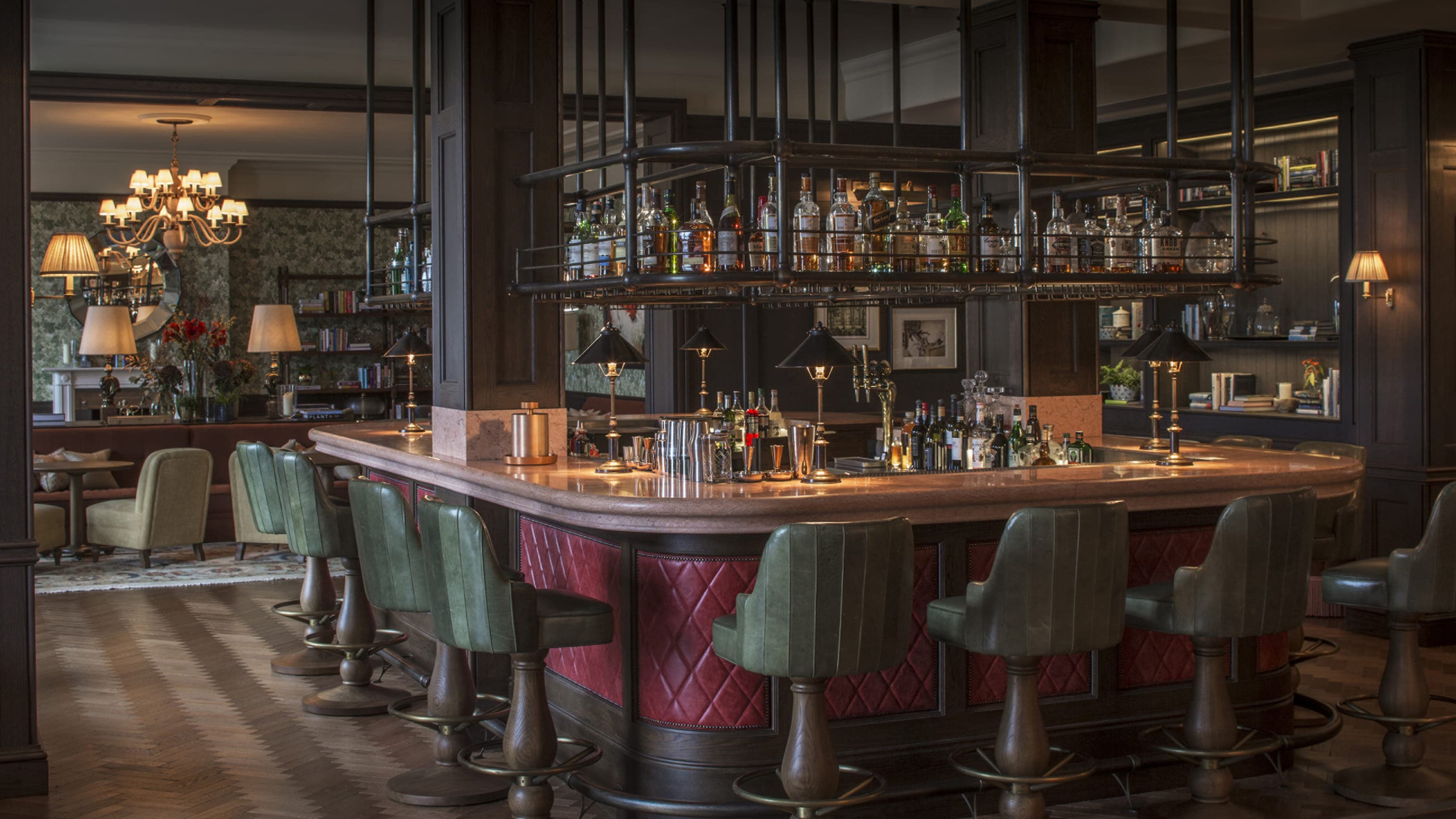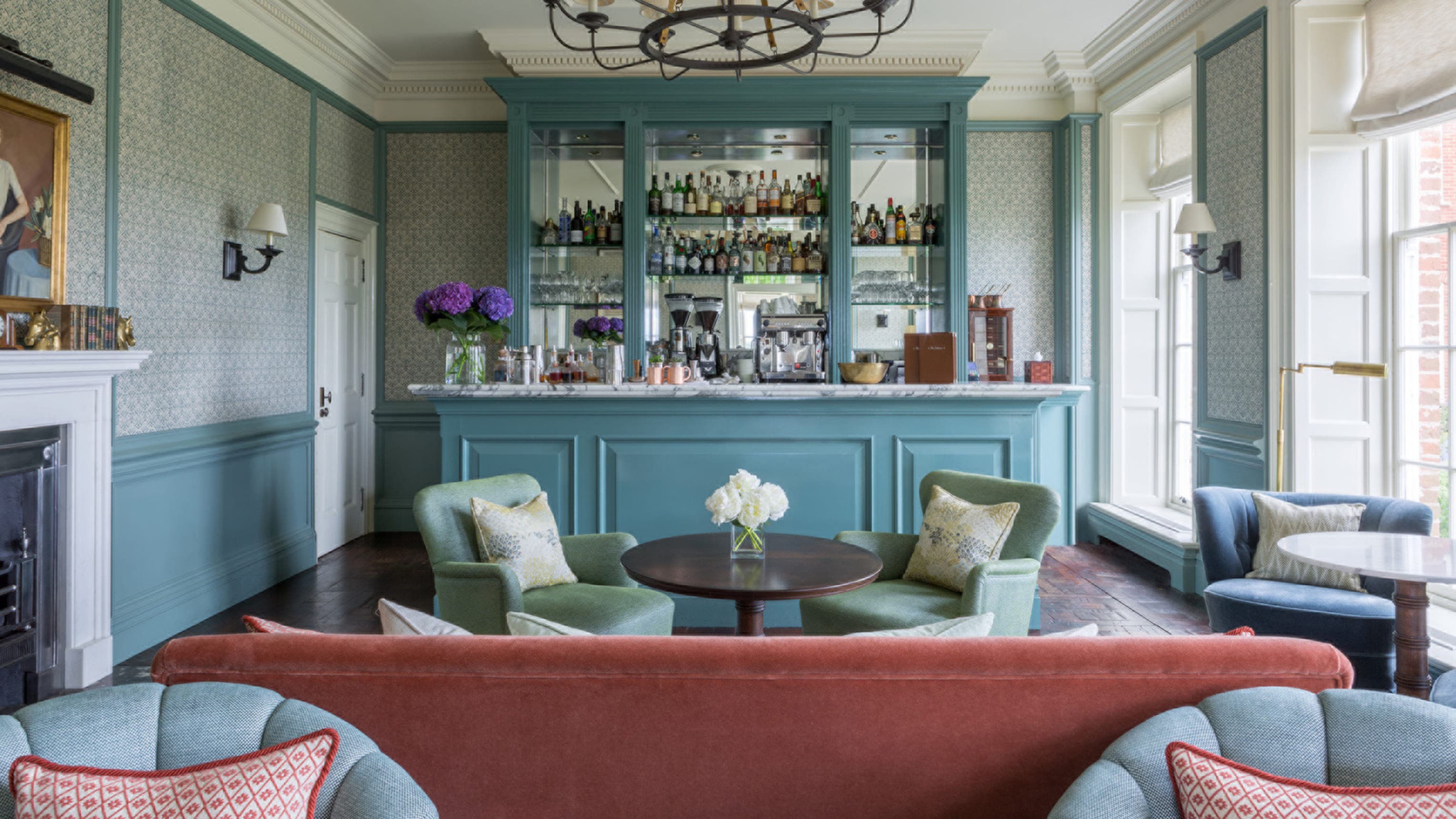 William Godson suite (90 кв. м). Гостиная с обеденной зоной (стол на 4 персоны), спальня с кроватью king-size, ванная комната с ванной и душем. Расположены в здании Georgian Manor House. Вид на территорию отеля.