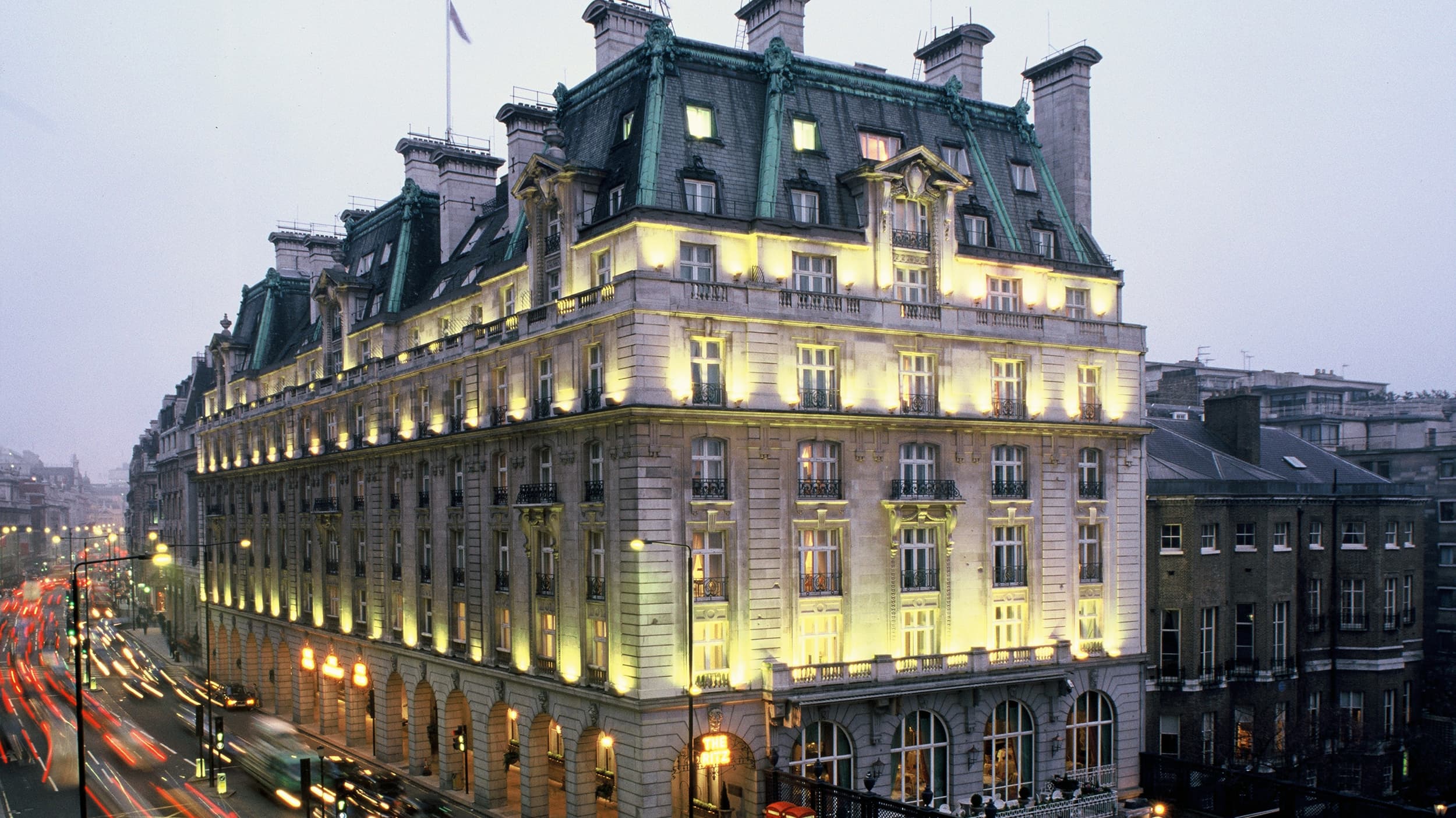 The Trafalgar Suite (80 кв. м). Гостиная, спальня, ванная комната. Вид на улицу Пикадилли и Грин-Парк.