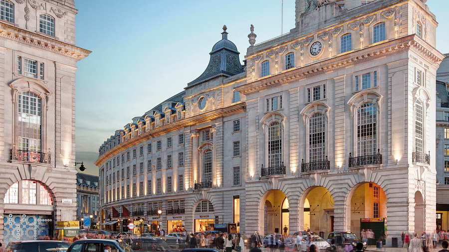 Club Suite (105 кв. м). Гостиная с обеденной зоной, спальня с гостиной зоной и кроватью king-size, гардеробная, ванная комната, гостевой санузел. Предоставляются услуги дворецкого. Вид на улицу Regent Street.