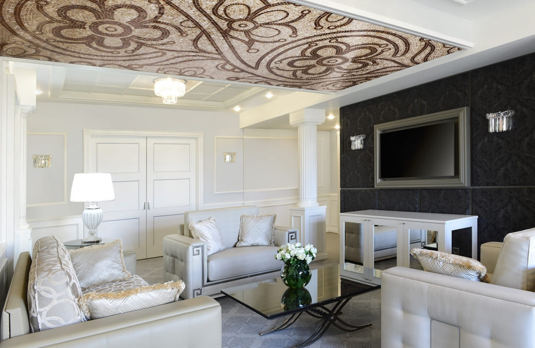 Royal suite (420 кв. м): гостиная с обеденной зоной, спальня с кроватью king-size, ванная комната с ванной и душевой кабиной. Расположен на 5 этаже в новой части отеля. Панорамный вид на город.