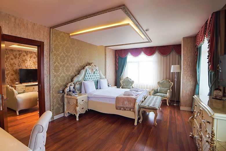 Звукоизолированные номера отеля роскошно оформлены в классическом стиле, уложен деревянный пол. Из окон открывается вид на город. В числе удобств — кондиционер, мини-бар, а также телевизор с плоским экраном и спутниковыми каналами. Кроме того, в распоряжении гостей каждого номера электрочайник с принадлежностями для чая/кофе. Собственная ванная комната укомплектована бесплатными туалетно-косметическими принадлежностями, халатами и тапочками. В некоторых номерах обустроена гостиная зона.