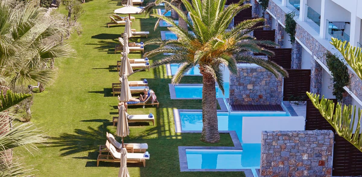 Великолепный Grecotel Amirandes создан по высочайшим стандартам изысканной средиземноморской архитектуры и отличается безупречной эстетикой: цветущие сады, спускающиеся к лазурным водам моря, лагуны, окаймленные пальмами, белые каменные террасы… Задуманный в стиле дворцов минойских королей и венецианской знати, курорт Amirandes предлагает своим гостям легкую атмосферу элегантной европейской роскоши. Изящные линии архитектуры курорта прекрасно сочетаются с прославленной красотой южного средиземноморского пейзажа, который создают серебристые оливковые деревья, тропические пальмы и цветущие кустарники на фоне ярко-голубого неба и сверкающих морских волн. Сидя на белоснежной каменной террасе с видом бескрайнего морского простора, приятно за чашечкой кофе встретить рассвет, а также проводить уходящий день, любуясь закатом и потягивая экзотический коктейль.