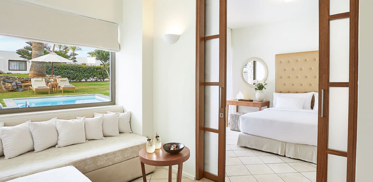 Отель расположен на курорте Херсониссос, в 20 минутах езды от аэропорта Ираклиона.