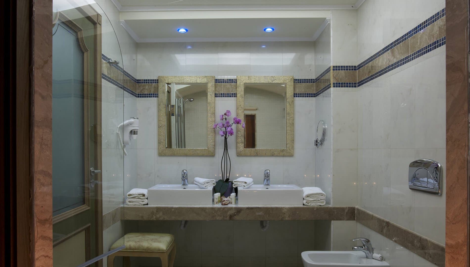 Кондиционер, спутниковое телевидение, WI-FI доступ в Интернет, телефон, телефон в ванной комнате, мини-бар, оборудование для приготовления чая и кофе, сейф, фен, халаты, тапочки.
