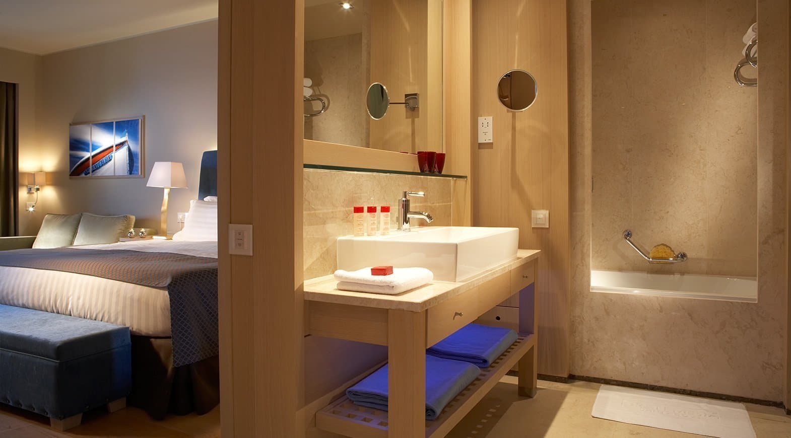Душ/ванна, халат и тапочки, туалетные принадлежности, фен, индивидуальный кондиционер (бесплатно), спутниковое ТВ с 7 каналами, DVD-плеер (по запросу), прямой телефон, мини-бар (платно), электрочайник, утюг и гладильная плита (по запросу), питьевая вода (1 бут. по приезде), чай, кофе, сахар, стол и стулья, софа, wi-fi, сейф.