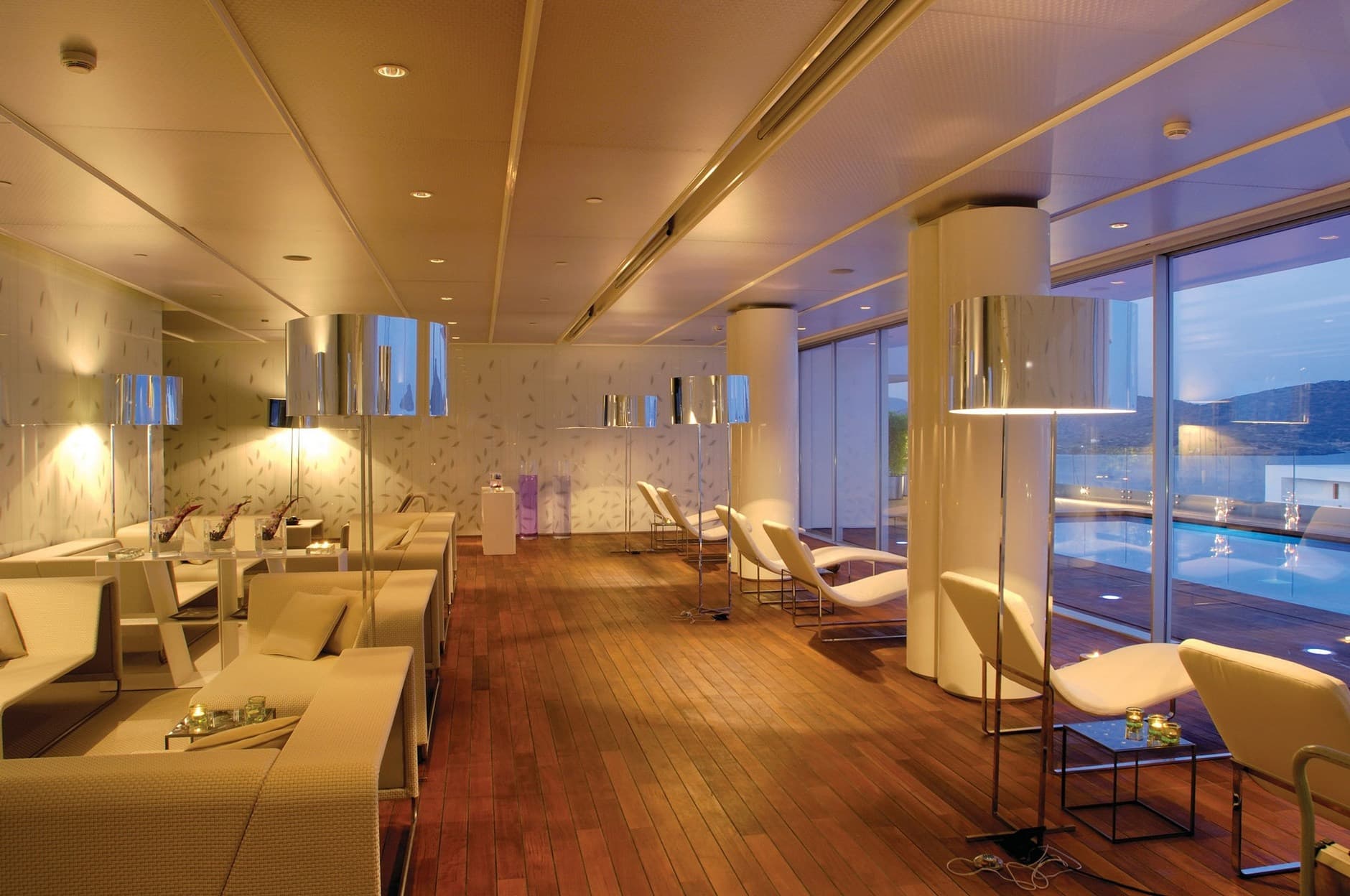 Elounda Bay Palace – живописный курорт, выполненный в архитектурном стиле Крита. Отель расположен в окружении тенистых садов на берегу Средиземного моря и занимает территорию в восемь гектаров. Идеально подходит для тех, кому нужен спокойный отдых в сочетании с первоклассным сервисом и самыми современными условиями проживания. На территории отеля два бассейна, три ресторана, три бара, три конференц-зала, три комнаты для переговоров, пять освещаемых теннисных кортов, центр водного спорта и школа подводного плавания. Пляж Elounda Bay Palace награжден престижным «Голубым флагом» за идеальное состояние и чистоту прибрежных вод. Гости отеля могут посещать рестораны и SPA-центр соседнего отеля Elounda Beach.