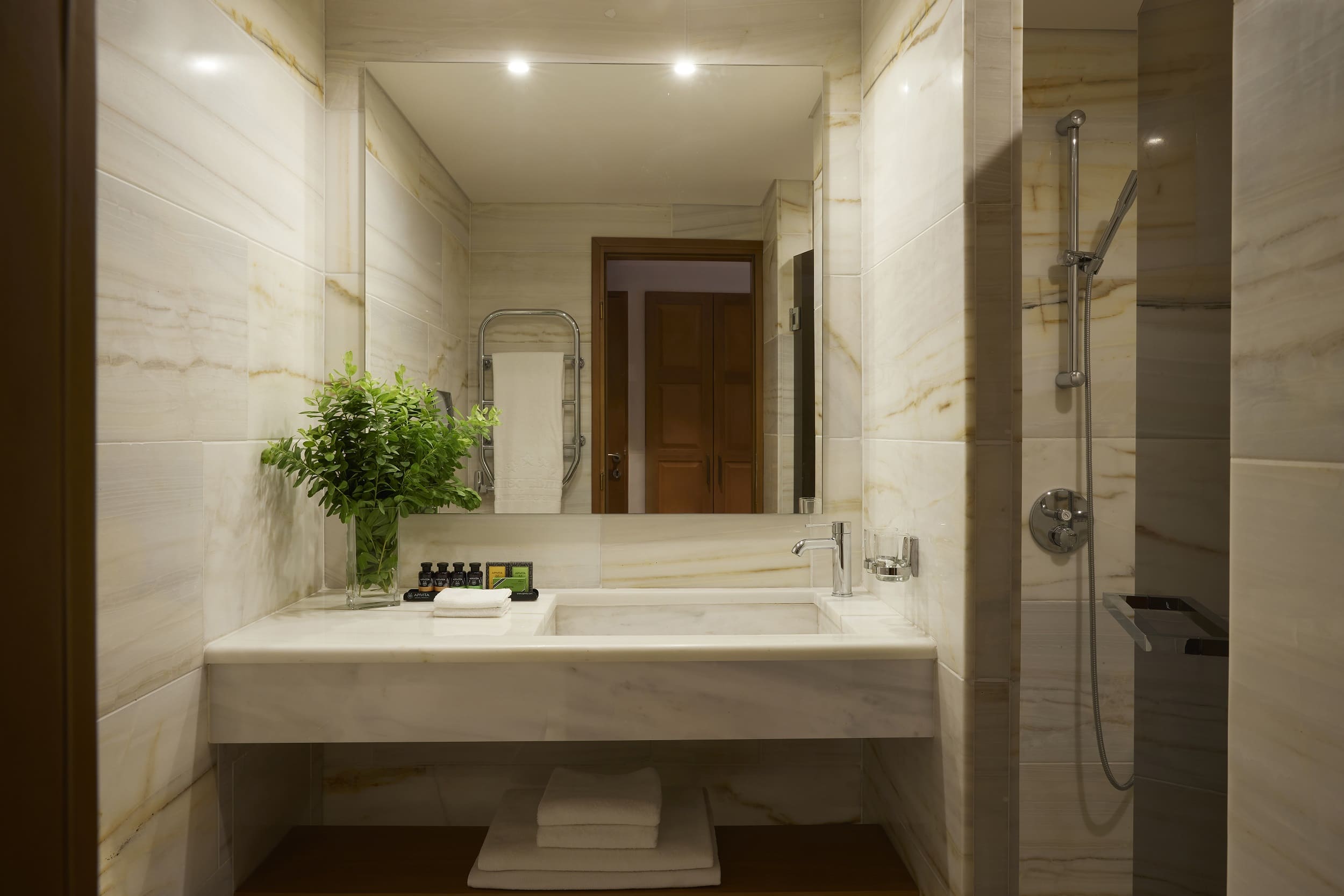 2 ресторана, 2 бара, винный погреб, закрытый подогреваемый бассейн с пресной водой, хамам, сауна, тренажерный зал, кинотеатр, парковка, причал для яхт. Гости могут пользоваться инфраструктурой и услугами соседнего отеля Porto Elounda Golf & Spa Resort (отели расположены в одной бухте и находятся рядом).