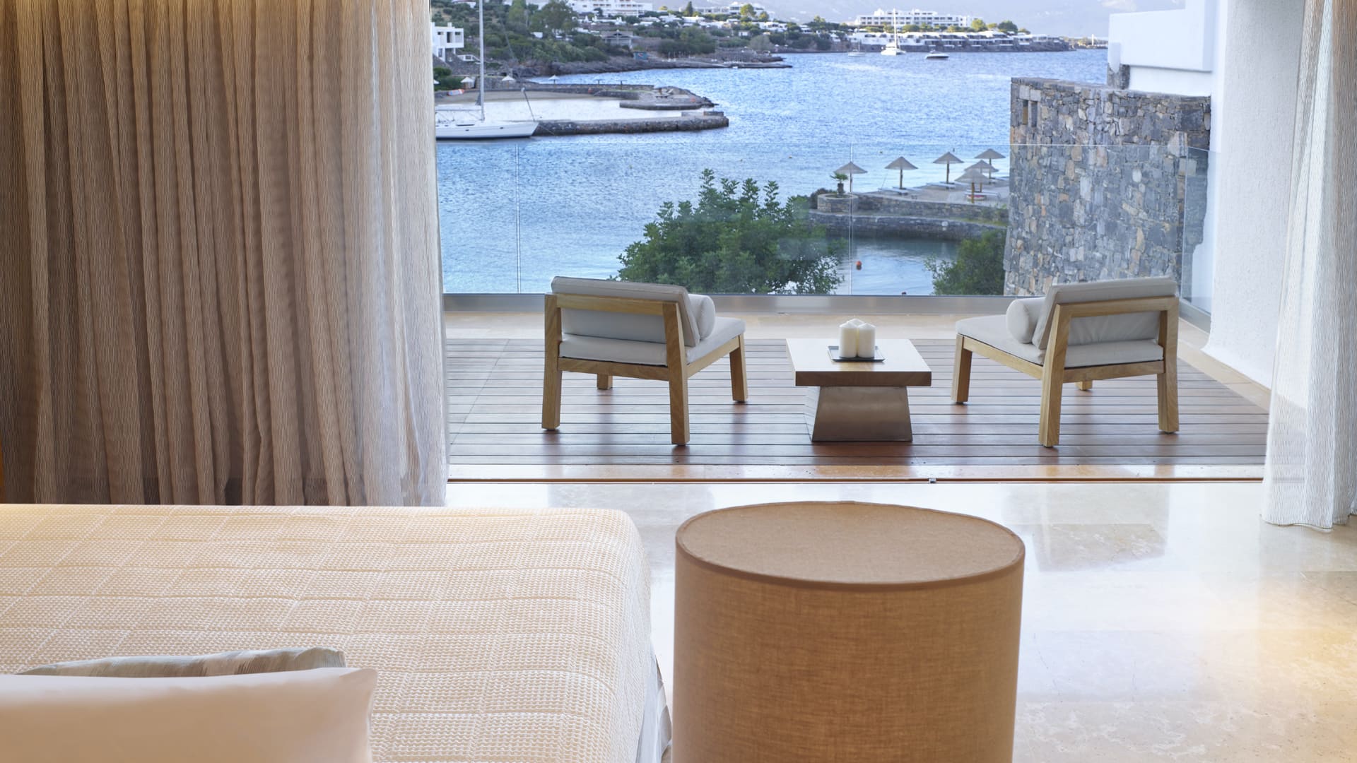 Отель расположен на берегу залива Мирабелло в престижной курортной зоне Элунда на северо-восточном побережье Крита в 70 км от аэропорта Ираклиона.