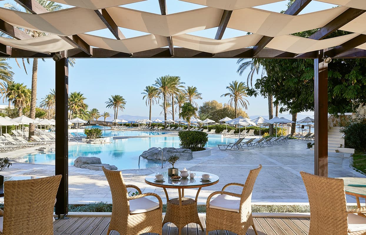 Отель состоит из главного корпуса и комплекса бунгало, напоминающего небольшой прибрежный поселок. Водный рай готов принять гостей всех возрастов: извилистая речка соединяет два оригинальных бассейна, и даже таверна окружена со всех сторон бассейном. Великолепные холлы и просторные террасы создают ощущение блеска и роскоши. Отель расположен на великолепном пляже в 4 км от центра города Кос, неподалеку от развалин Асклепиона, где практиковал основатель медицинской науки Гиппократ.