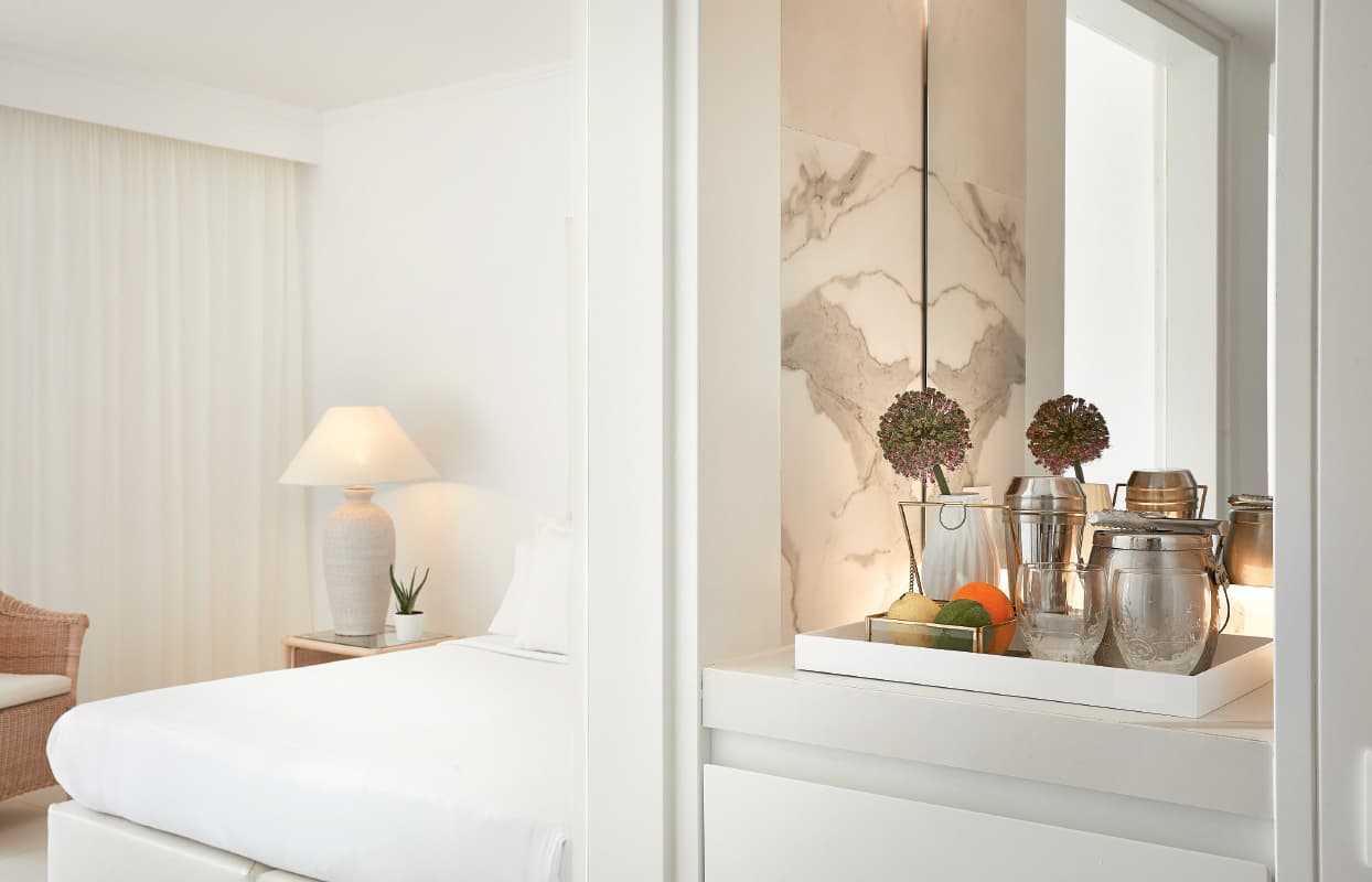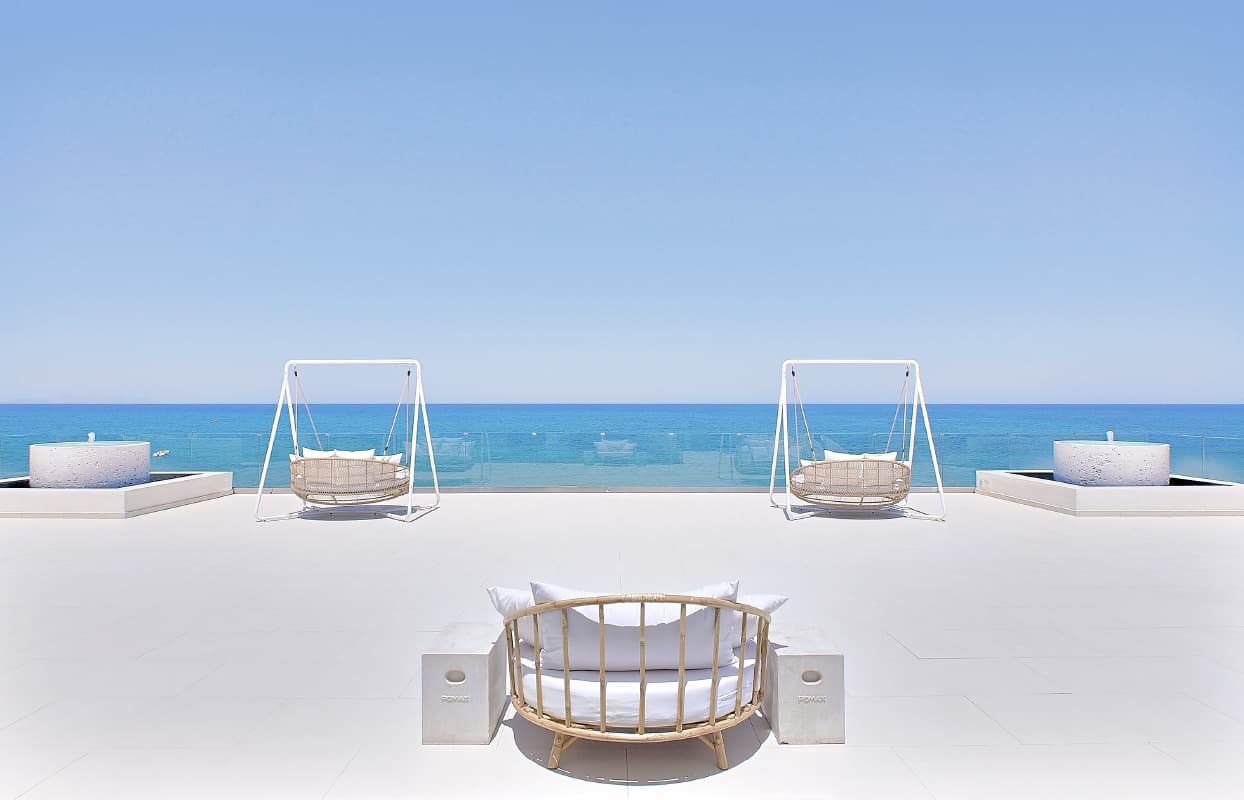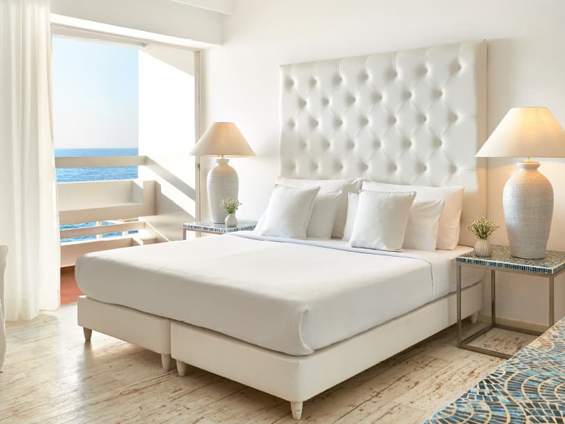 Название отеля в переводе означает «белый дворец», и оно в полной мере оправдано: белоснежное здание, выполненное в роскошном средиземноморском стиле, гармонично сочетается с яркой синевой неба. Благодаря своему уникальному расположению отель дарит гостям замечательную возможность любоваться панорамными видами на море и город Ретимно прямо с собственных террас. В просторных номерах преобладает ослепительно-белый и нежно-голубые тона, а столы и тумбочки украшены декоративной мозаикой.