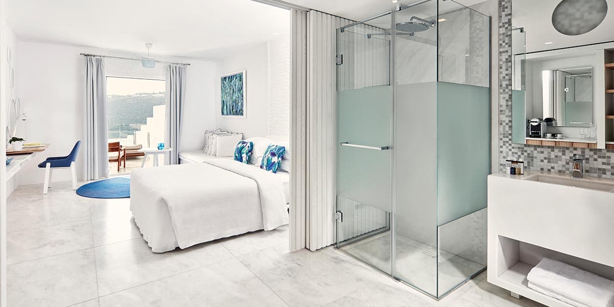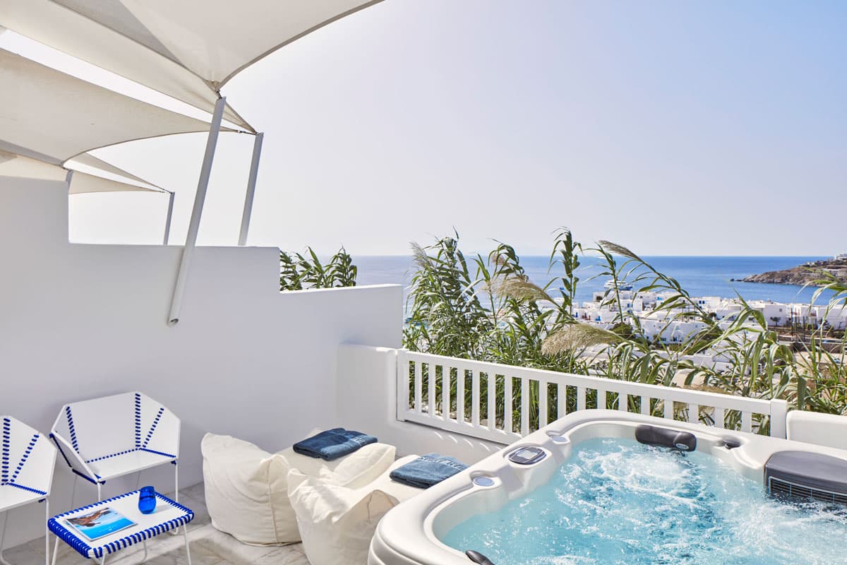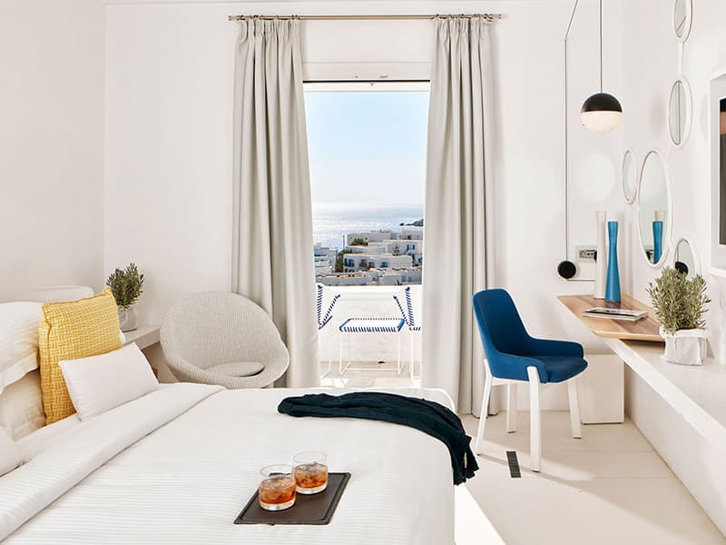 95 номеров, вилла, 2 ресторана, бар, открытый бассейн, SPA-центр (3 закрытых бассейна для гидротерапии. сауна, парная, массаж, процедуры по уходу за лицом и телом), тренажерный зал, йога, пилатес, бизнес-центр, услуги няни (по запросу), парковка. Неподалеку от отеля: водные виды спорта, дайвинг. Внимательный сервис и индивидуальный подход к каждому клиенту – фирменная черта цепочки The Myconian Collection, включающей в себя лучшие гостиницы острова.