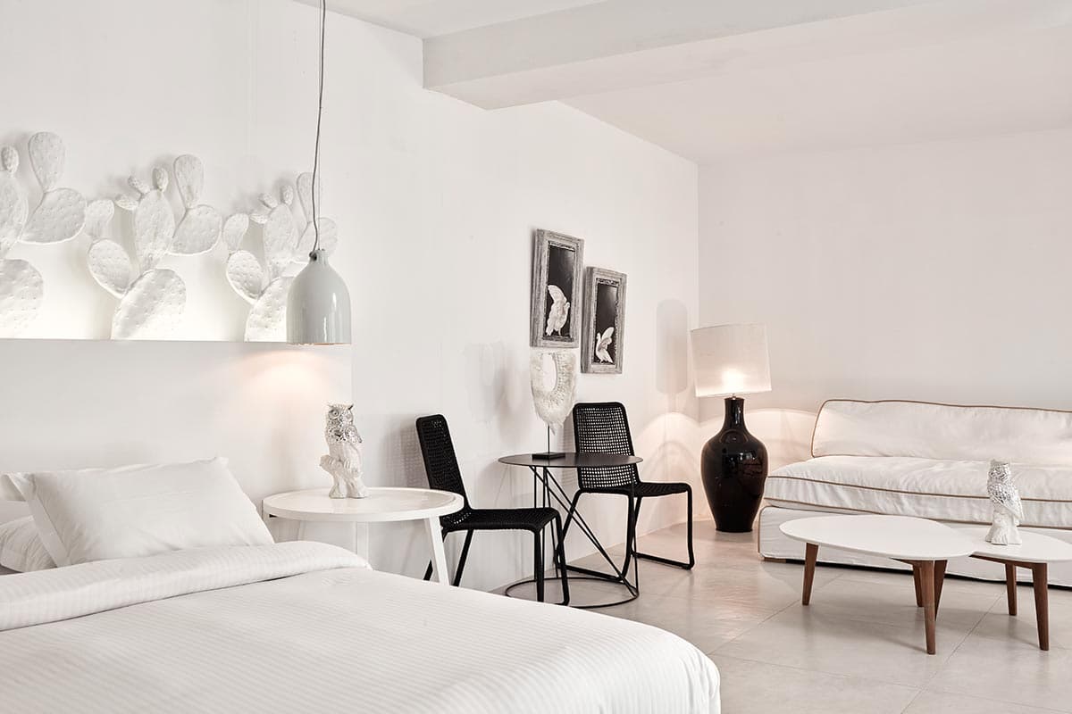Кондиционер, отопление, спутниковое телевидение, DVD/CD-плеер, WI-FI доступ в Интернет, радио, телефон, сейф, мини-бар, утюг и гладильная доска, фен, халаты, тапочки. Возможно объединение номеров.