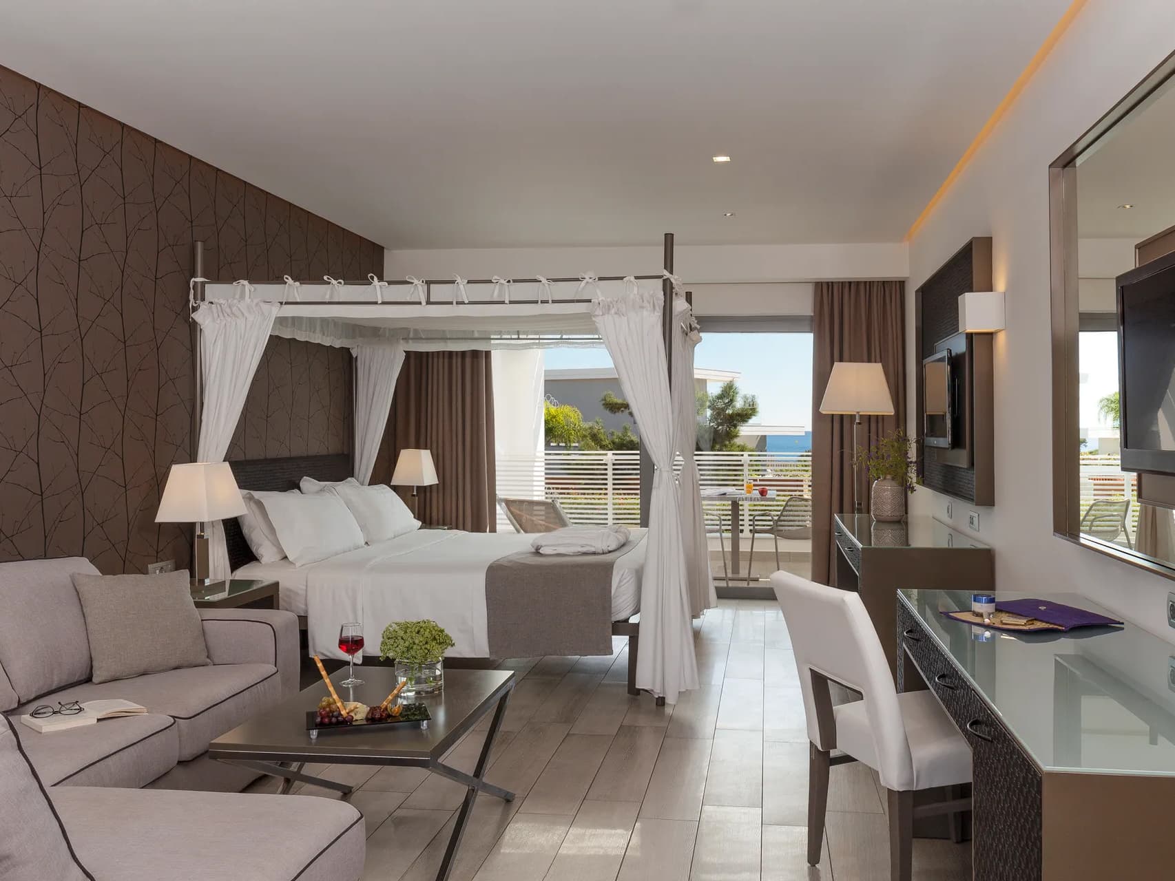 537 номеров, 6 ресторанов, 2 бара, собственный пляж, открытый бассейн, детский бассейн, SPA-центр (закрытый гидромассажный бассейн, сауна, хаммам, джакузи, массаж, процедуры по уходу за лицом и телом), тренажерный зал, аэробика, аквааэробика, 2 освещаемых теннисных корта, мини-футбол, настольный теннис, пляжный волейбол, мини-гольф, стрельба из лука, дартс, бочча, водное поло.