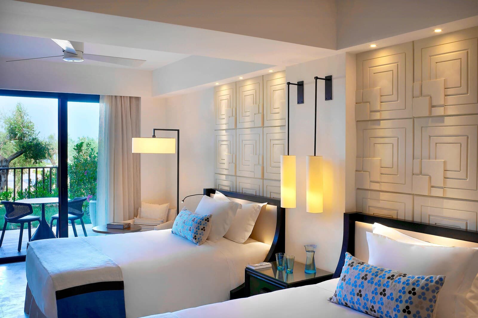 Комплекс окружен зелеными холмами, виноградниками и оливковыми рощами, создающими особый колорит. Умеренный климат дарит солнечные дни и тепло круглый год. А живописнейшие заливы, горы и песчаные пляжи образуют естественный пейзаж, в который гармонично вписан гостиничный комплекс, выдержанный в традиционном греческом стиле. К услугам гостей бесподобные номера, люксы и виллы с изысканной архитектурой и завораживающими видами на море и поля для гольфа. В ресторанах вам предстоит поистине незабываемое гастрономическое путешествие: шедевры средиземноморской, итальянской, греческой и ливанской кухни, украшенные винами из впечатляющей коллекции отеля, покорят сердце любого гурмана. Блюда из из лучших продуктов региона, включая ароматное оливковое масло, сочетают в себе секреты традиционных рецептов, современные веяния и смелые эксперименты знаменитых шеф-поваров.
