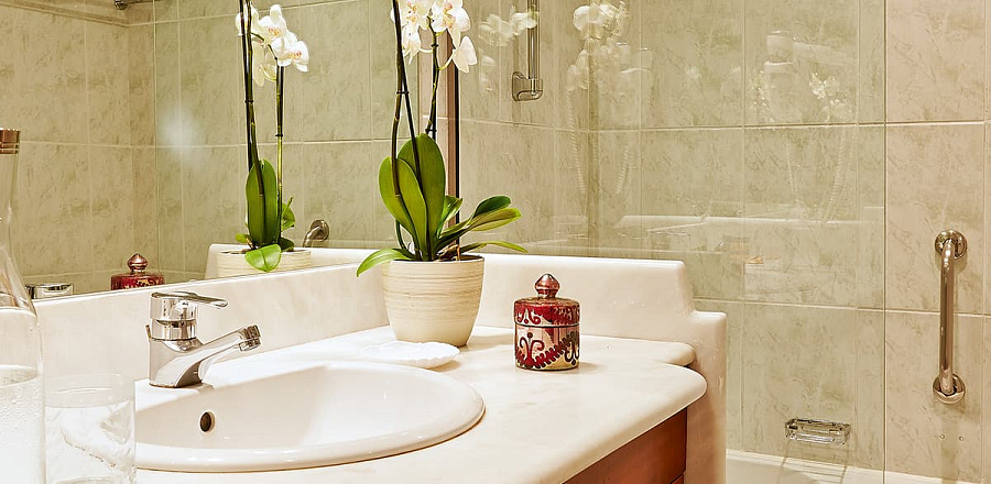Double guestroom side sea view (28 кв. м), Panoramic guestroom sea view (28 кв. м): балкон, спальня, ванная комната с ванной. Расположены в основном здании. Панорамный вид на море и сад.