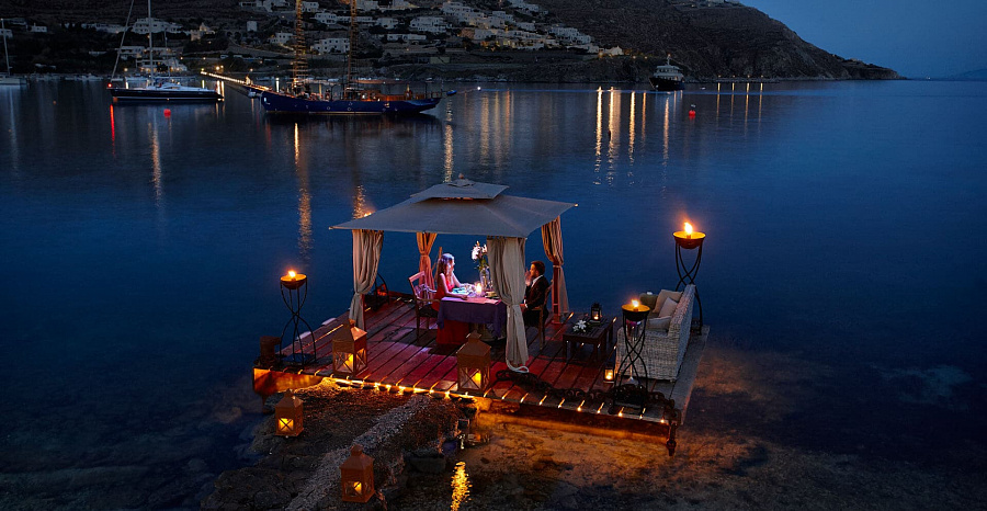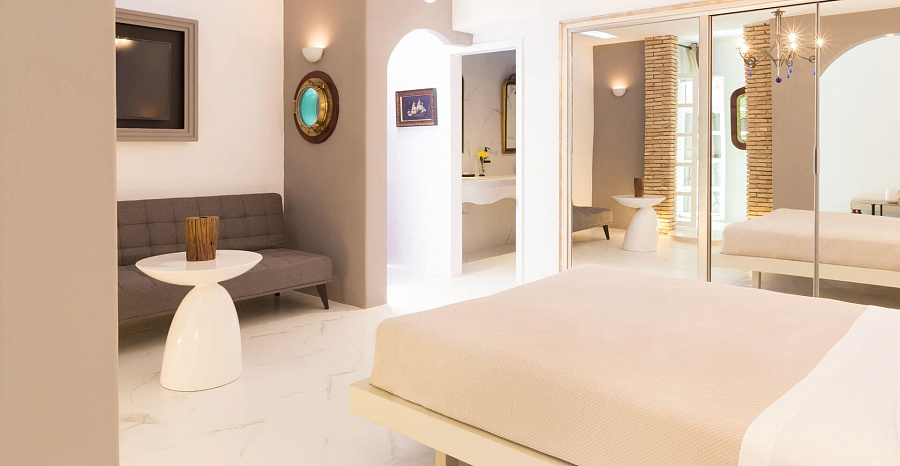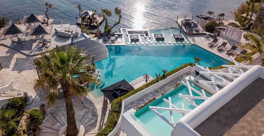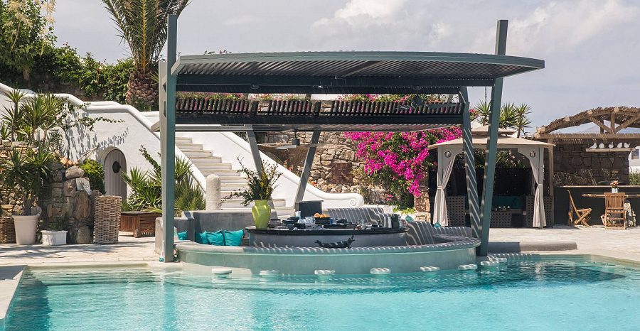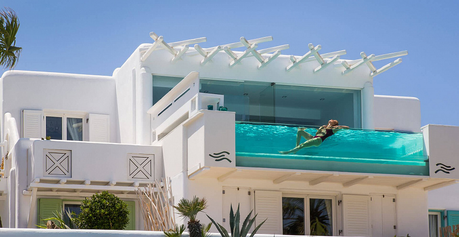 Уникальность Kivotos Mykonos – в сочетании гостеприимной атмосферы маленького семейного отеля с роскошью и комфортом элегантной аристократической виллы. Внутреннее убранство отеля впечатляет. Изысканные мозаики и фрески, скульптуры, антиквариат… Ресторан для гурманов La Meduse предлагает лучшие блюда мировой кухни и специальное меню Mare, в котором представлены деликатесы из даров моря, приготовленные по традиционным рецептам Южной Италии. На территории отеля расположились целых пять плавательных бассейнов; один из них оборудован стереосистемой с подводными динамиками, позволяющей пловцам наслаждаться звуками музыки.