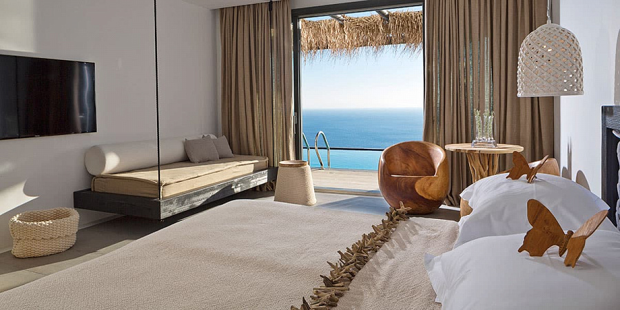 Отель Myconian Utopia Relais & Chateaux поражает изысканностью стиля в окружении красивейших средиземноморских пейзажей – действительно, настоящая утопия на греческом острове Миконос.
